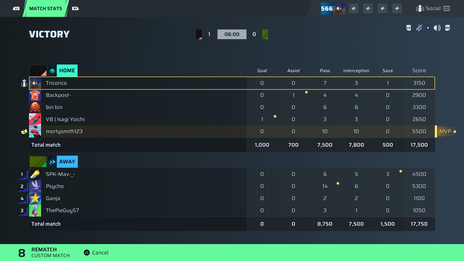 VB | Isagi Yoichi🐐#60 Striker91 OVR | 1 | 0 | 3 | 3 | 0 | 2,650 | — |