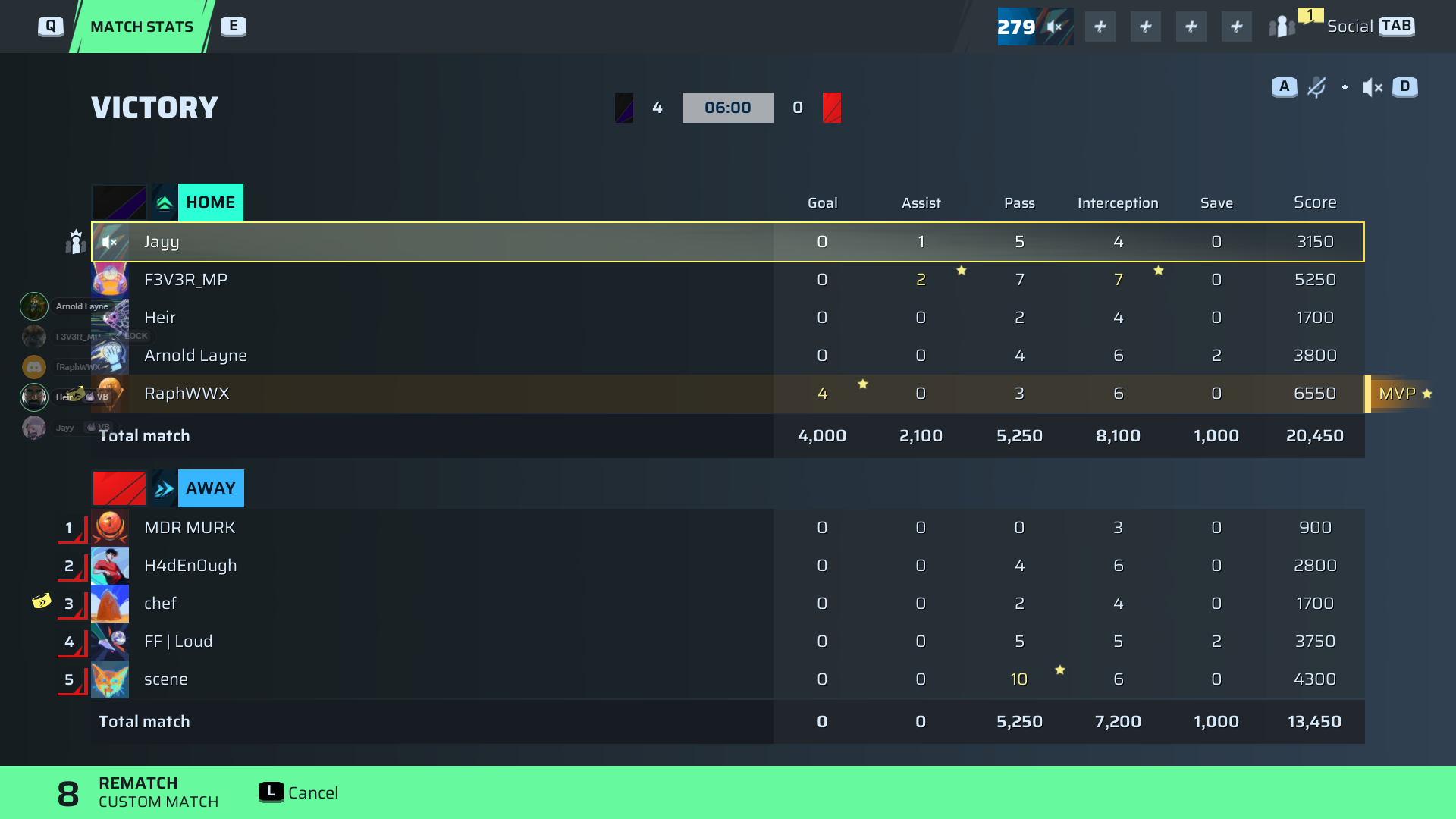 fRaphWWX🐐#172 Striker⭐ MVP94 OVR | 4 | 0 | 3 | 6 | 0 | 6,550 | — |
