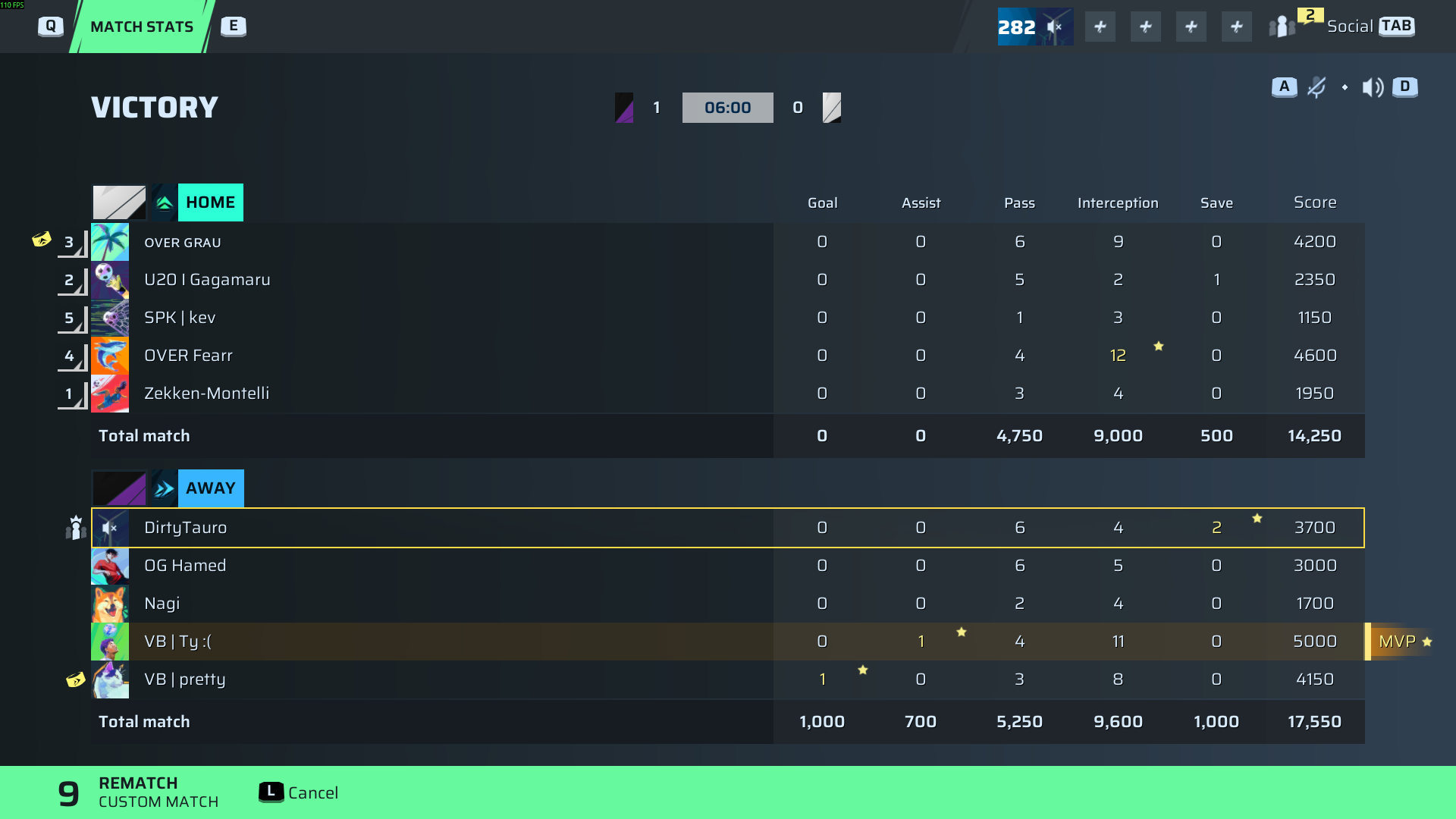 DirtyTauro🐐#6 Goalkeeper83 OVR | 0 | 0 | 6 | 4 | 2 | 3,700 | ✓ Yes |
