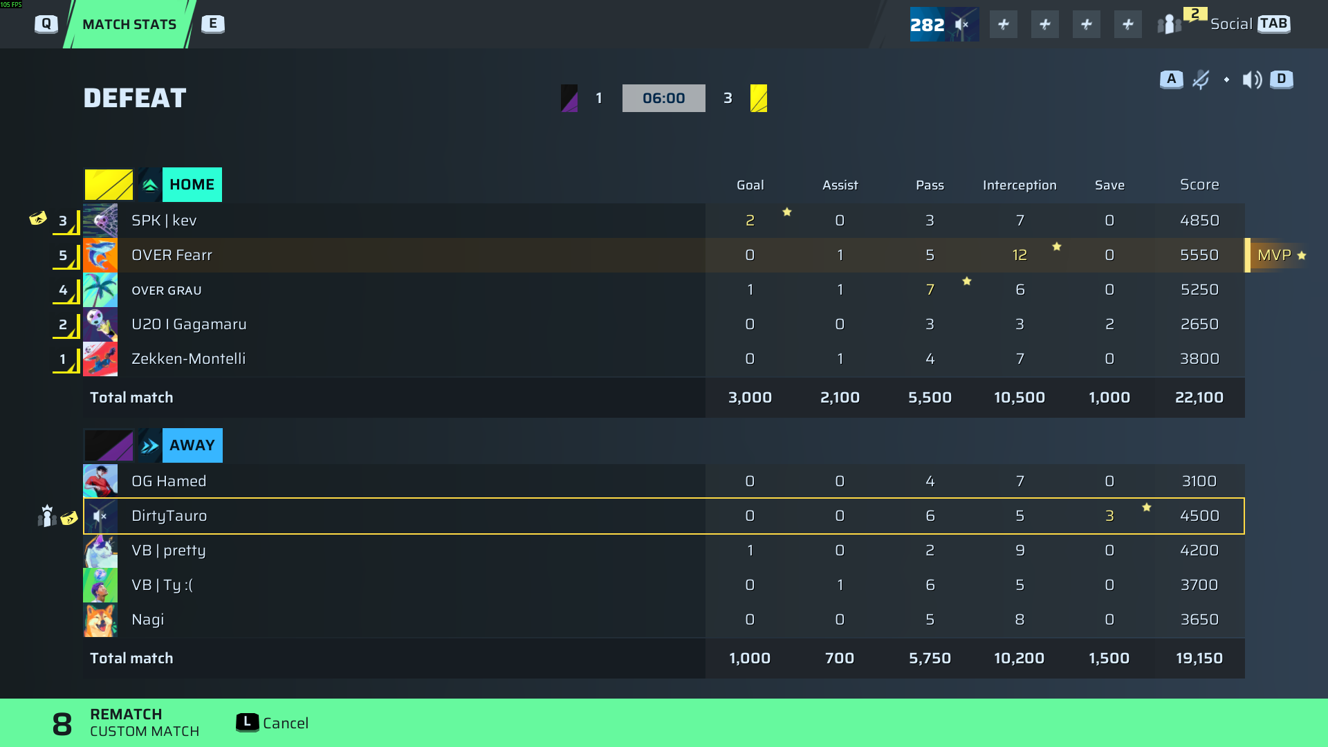 OVER Fearr🐐#1 Defense⭐ MVP94 OVR | 0 | 1 | 5 | 12 | 0 | 5,550 | — |