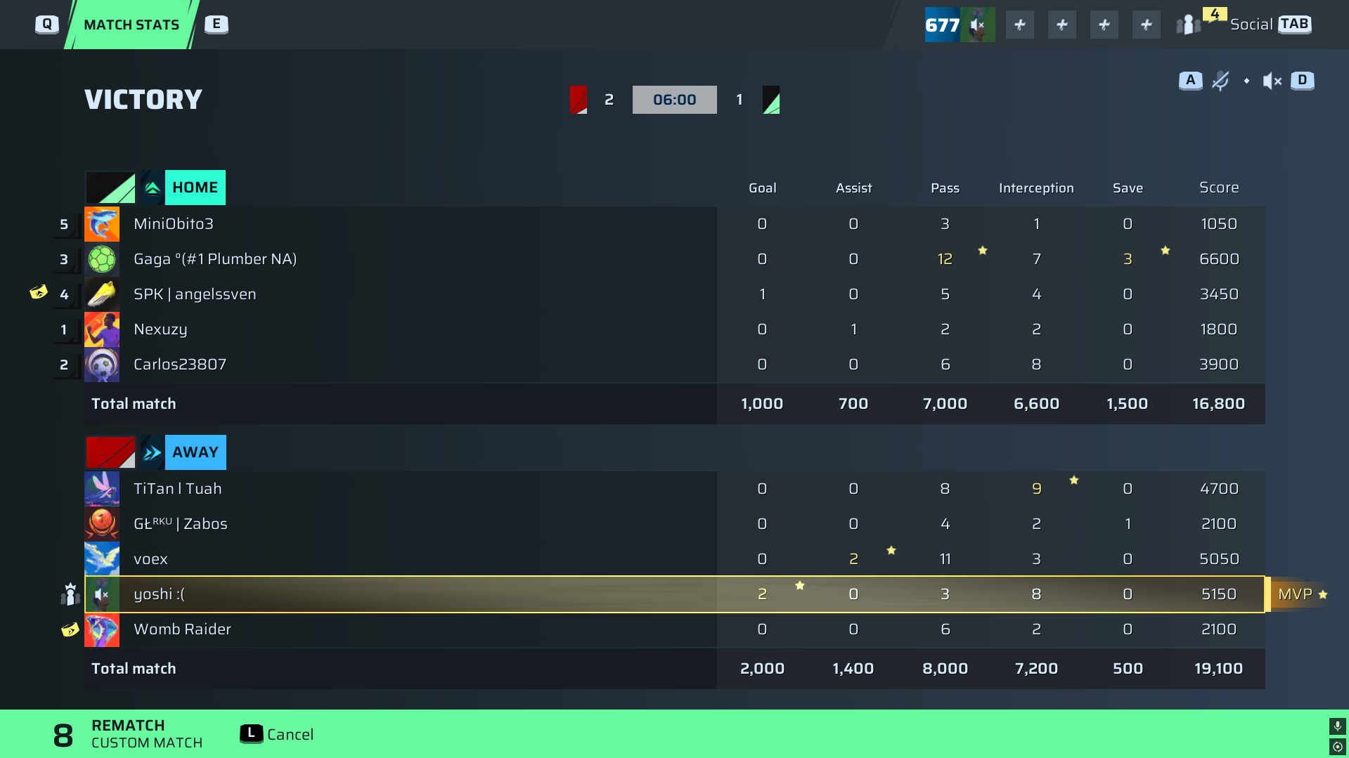 yoshi :(🐐#58 Striker92 OVR | 2 | 0 | 3 | 8 | 0 | 5,150 | — |