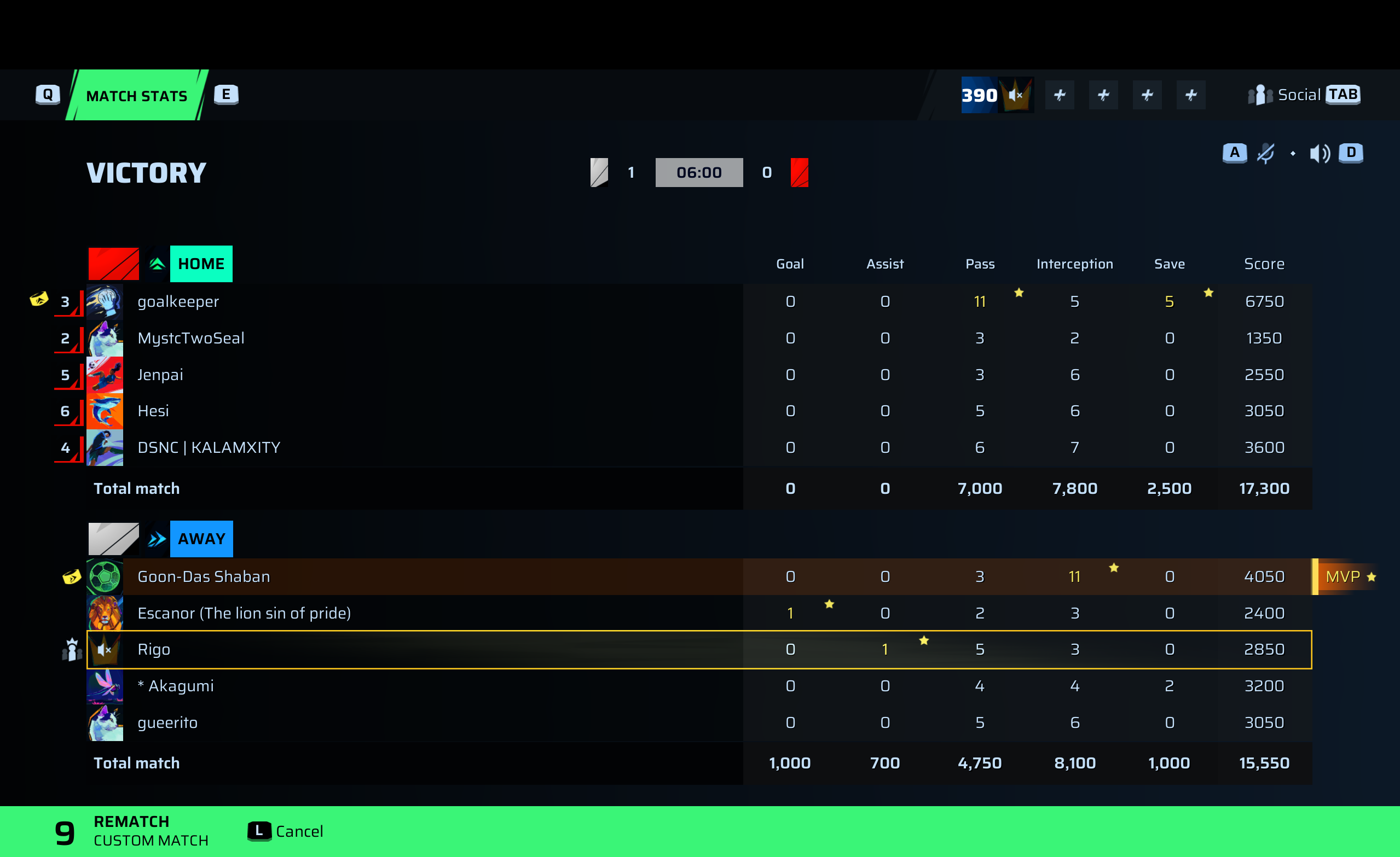 * Akagumi🐐#226 Goalkeeper76 OVR | 0 | 0 | 4 | 4 | 2 | 3,200 | ✓ Yes |