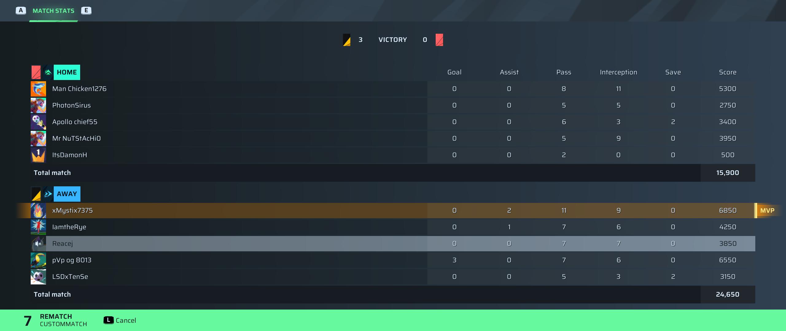 Mystix🐐#3 CDM⭐ MVP98 OVR | 0 | 2 | 11 | 9 | 0 | 6,850 | — |