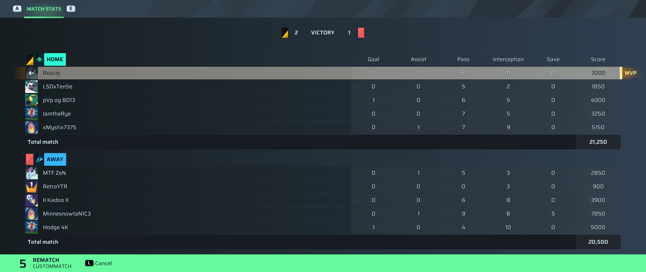 TEC I Reacej🐐#94 Striker⭐ MVP95 OVR | 1 | 1 | 8 | 11 | 0 | 7,000 | — |