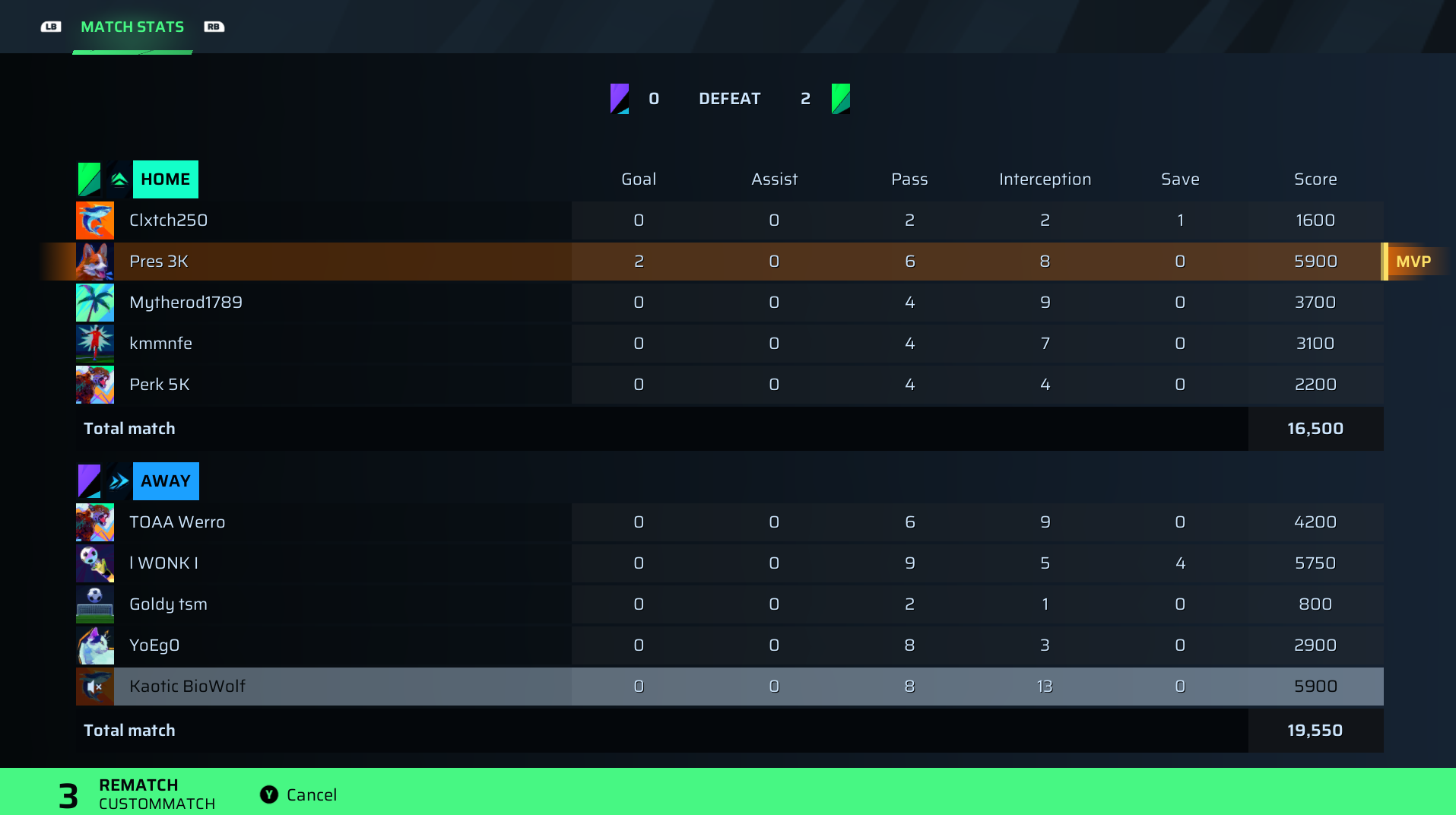 SPK | Pres🐐#9 CDM⭐ MVP82 OVR | 2 | 0 | 6 | 8 | 0 | 5,900 | — |