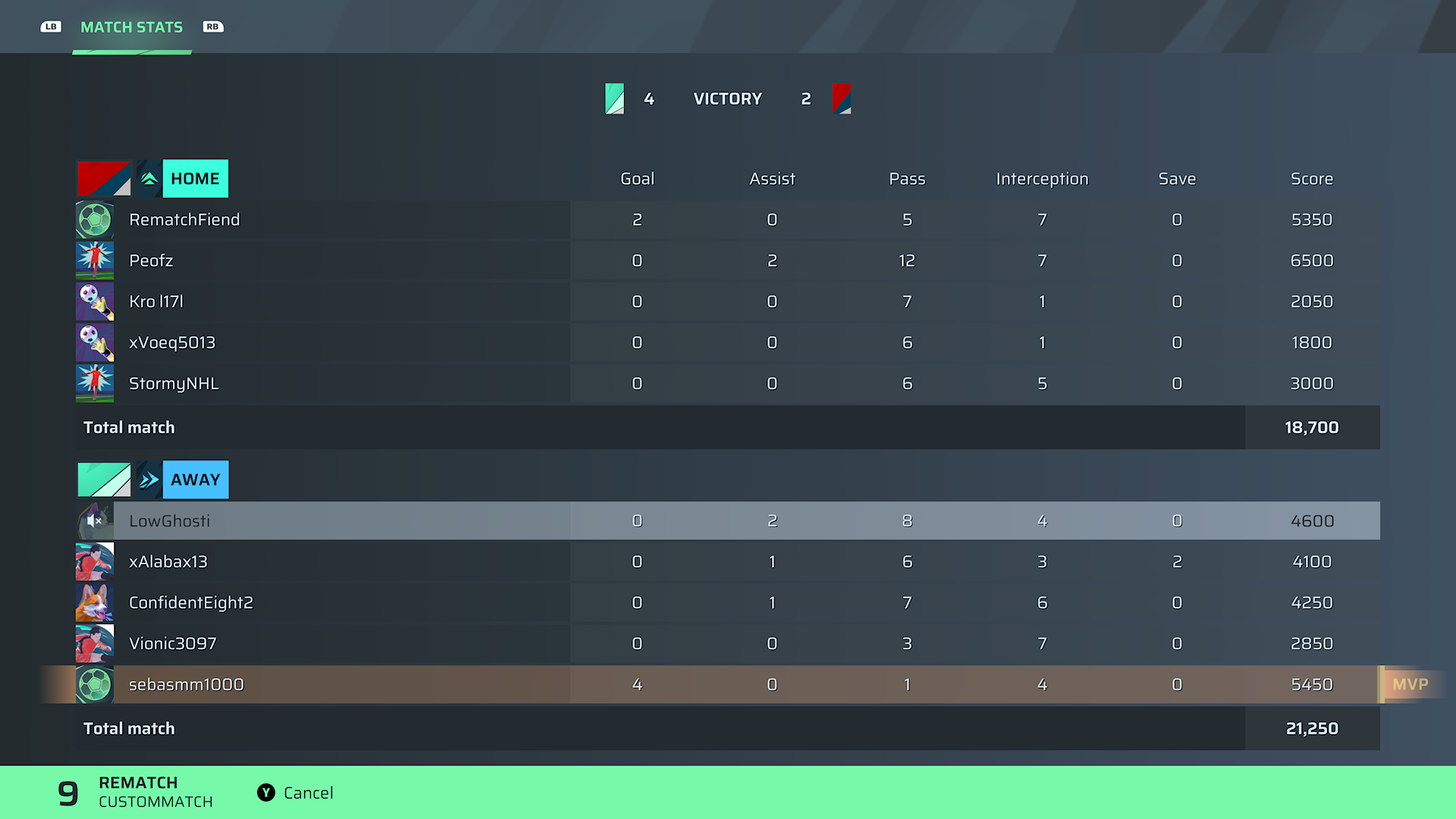 Sebasmm1000🐐#13 CAM⭐ MVP89 OVR | 4 | 0 | 1 | 4 | 0 | 5,450 | — |