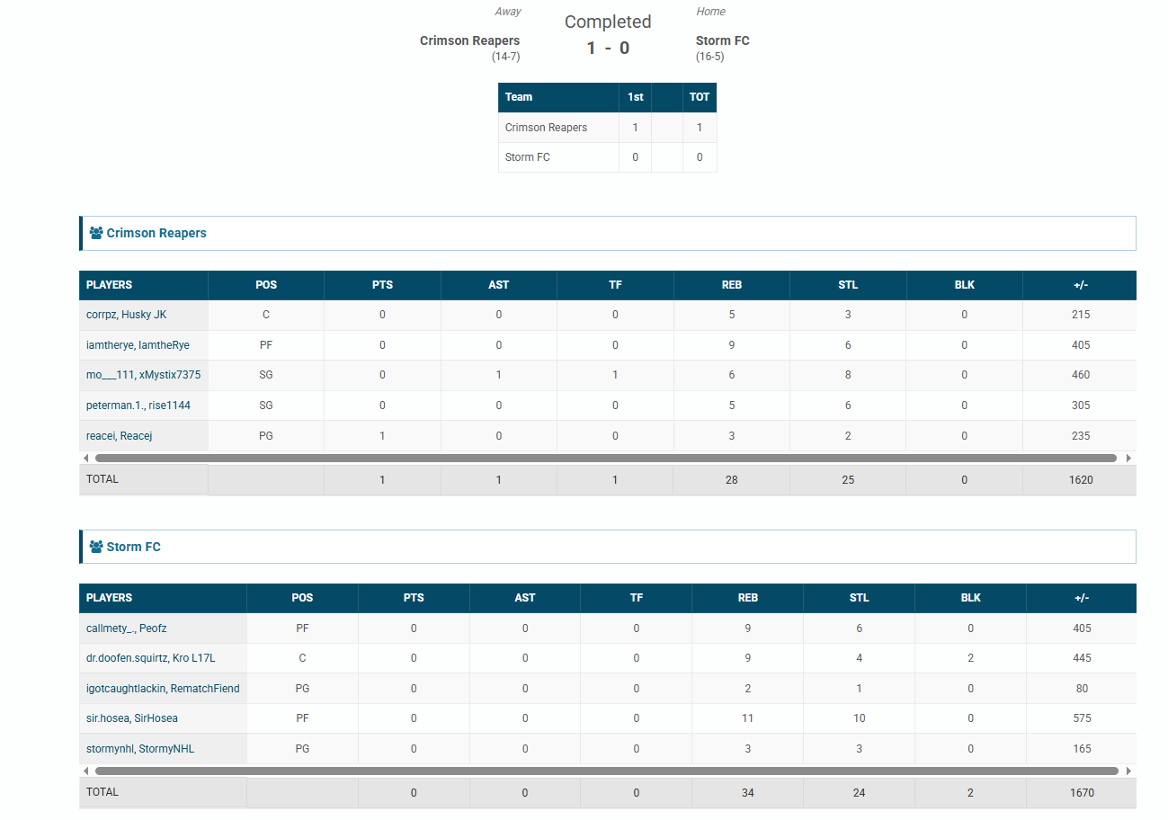 Stormy NC🐐#17 Striker94 OVR | 0 | 0 | 3 | 3 | 0 | 1,650 | — |