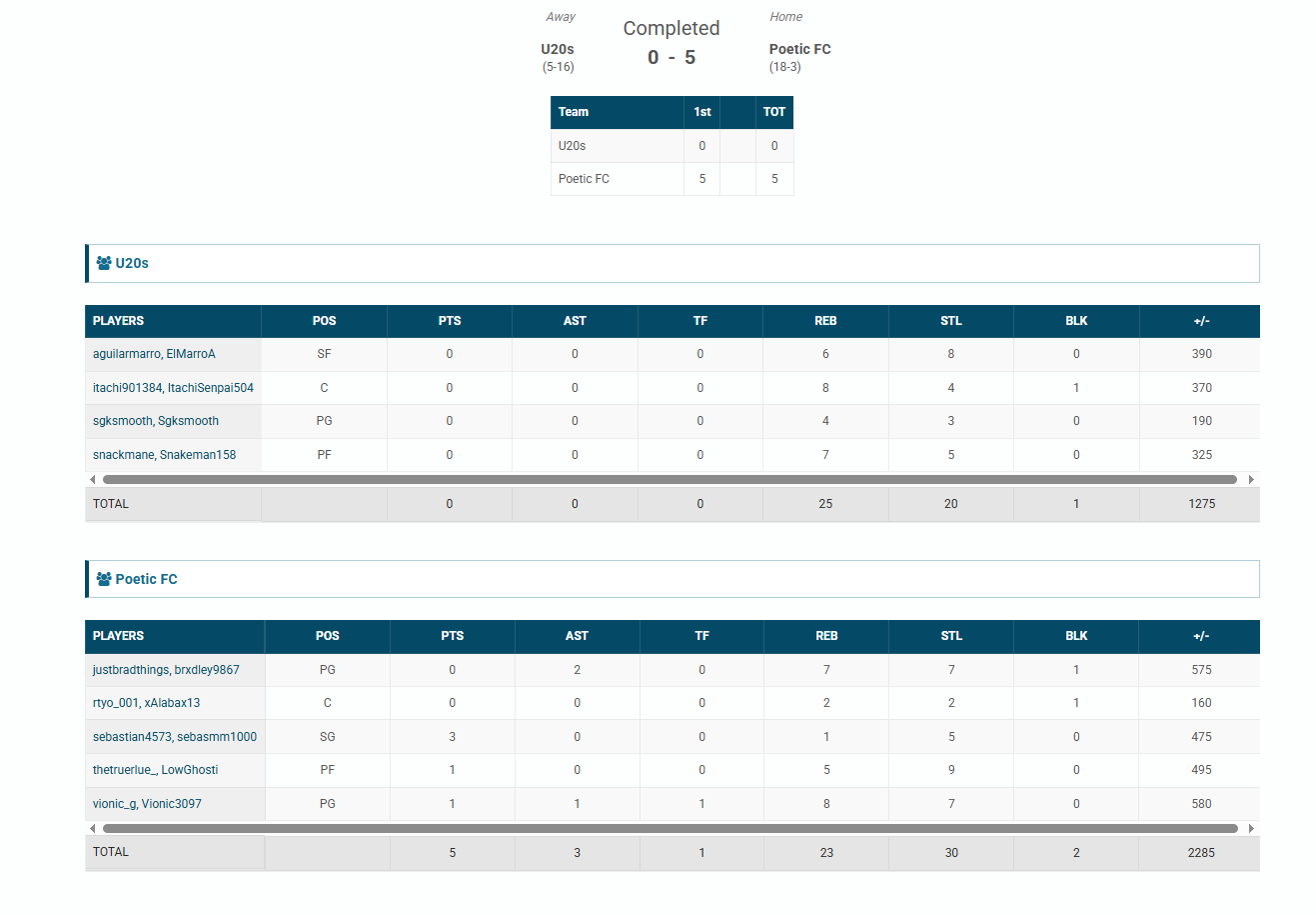 Sebasmm1000🐐#13 CAM89 OVR | 3 | 0 | 1 | 5 | 0 | 4,750 | — |