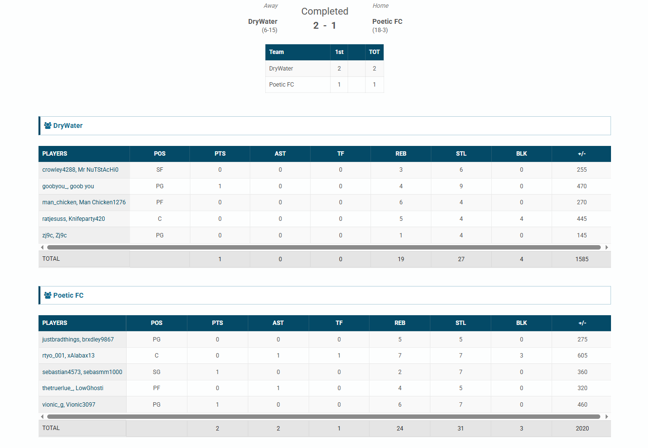 TEC I Ghosti🐐#190 Defense94 OVR | 0 | 1 | 4 | 5 | 0 | 3,200 | — |