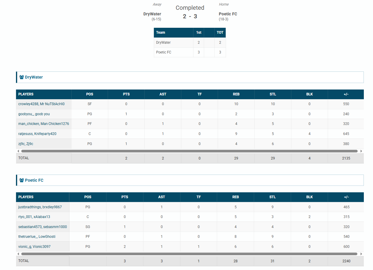 TEC I Ghosti🐐#190 Defense94 OVR | 0 | 1 | 8 | 9 | 0 | 5,400 | — |
