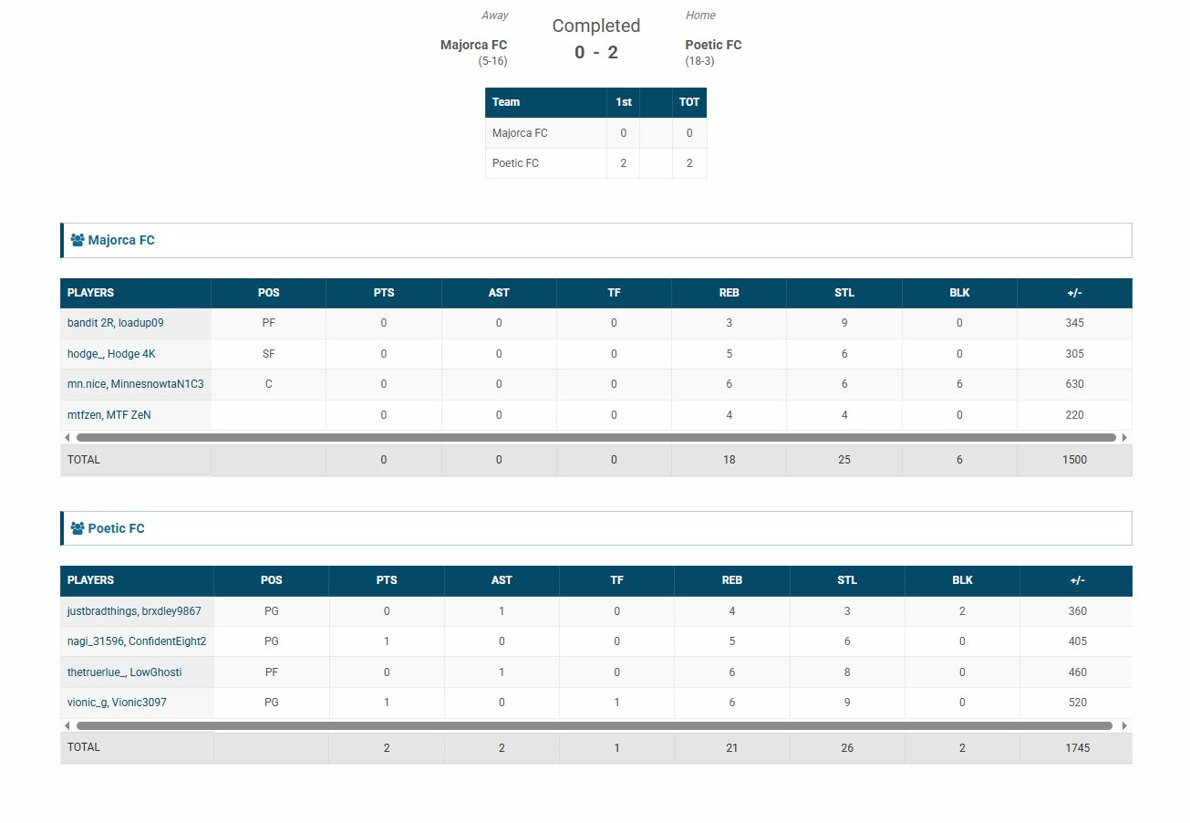 brxdley9867 75 OVR | 0 | 1 | 4 | 3 | 2 | 3,600 | — |