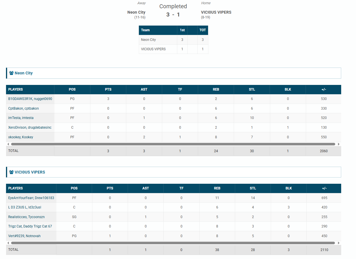 CptBakon Defense85 OVR | 0 | 0 | 6 | 6 | 0 | 3,300 | — |