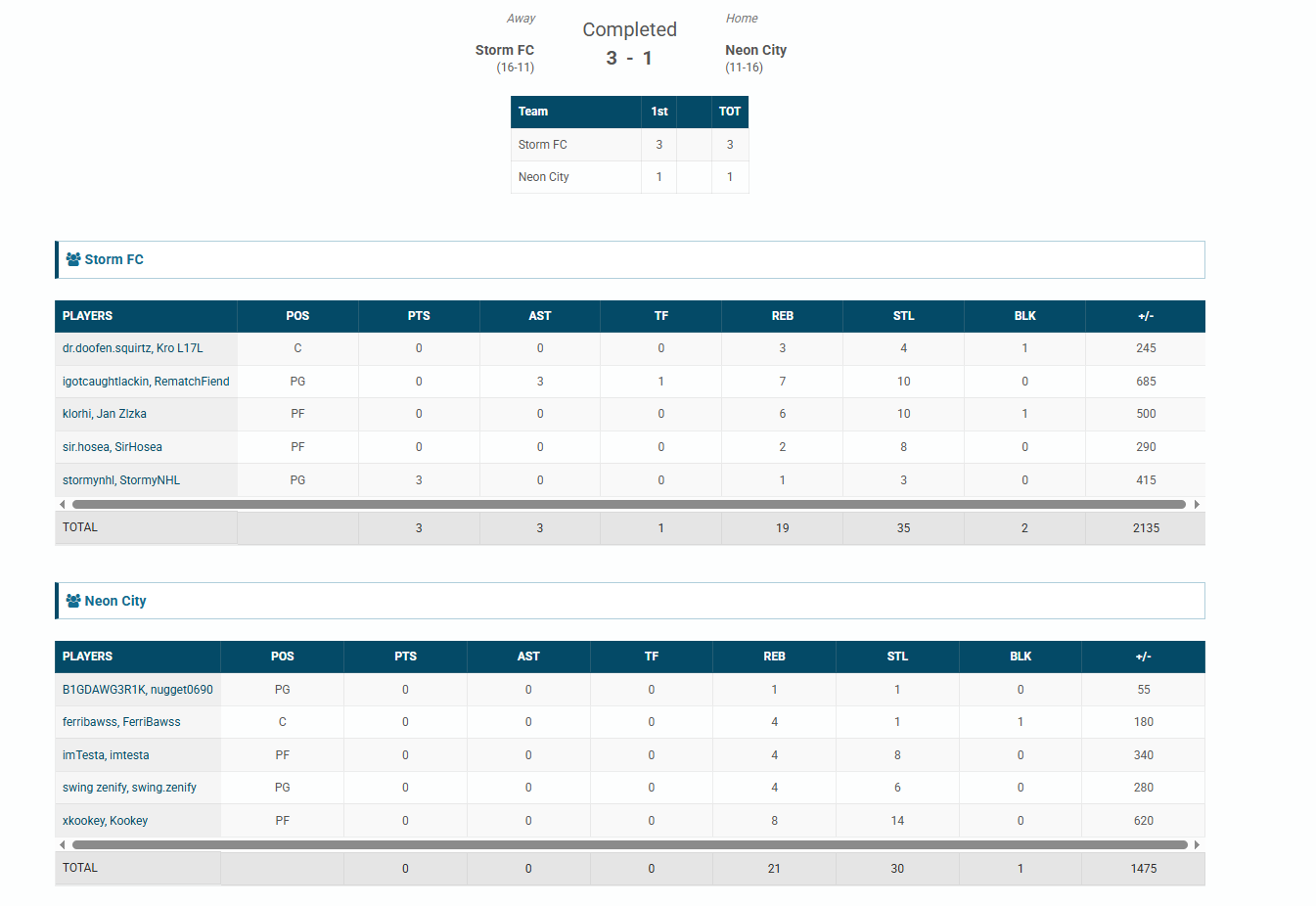 Stormy NC🐐#17 Striker93 OVR | 3 | 0 | 1 | 3 | 0 | 4,150 | — |