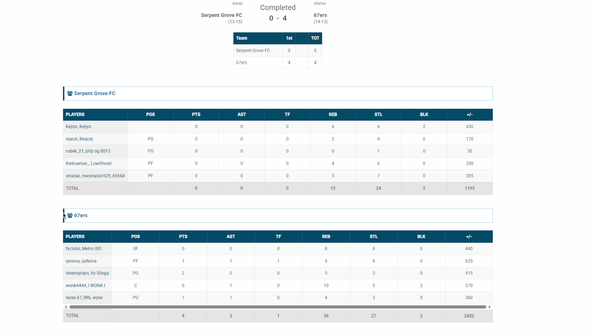 n0xxk🐐#120 Striker83 OVR | 1 | 1 | 4 | 3 | 0 | 3,600 | — |