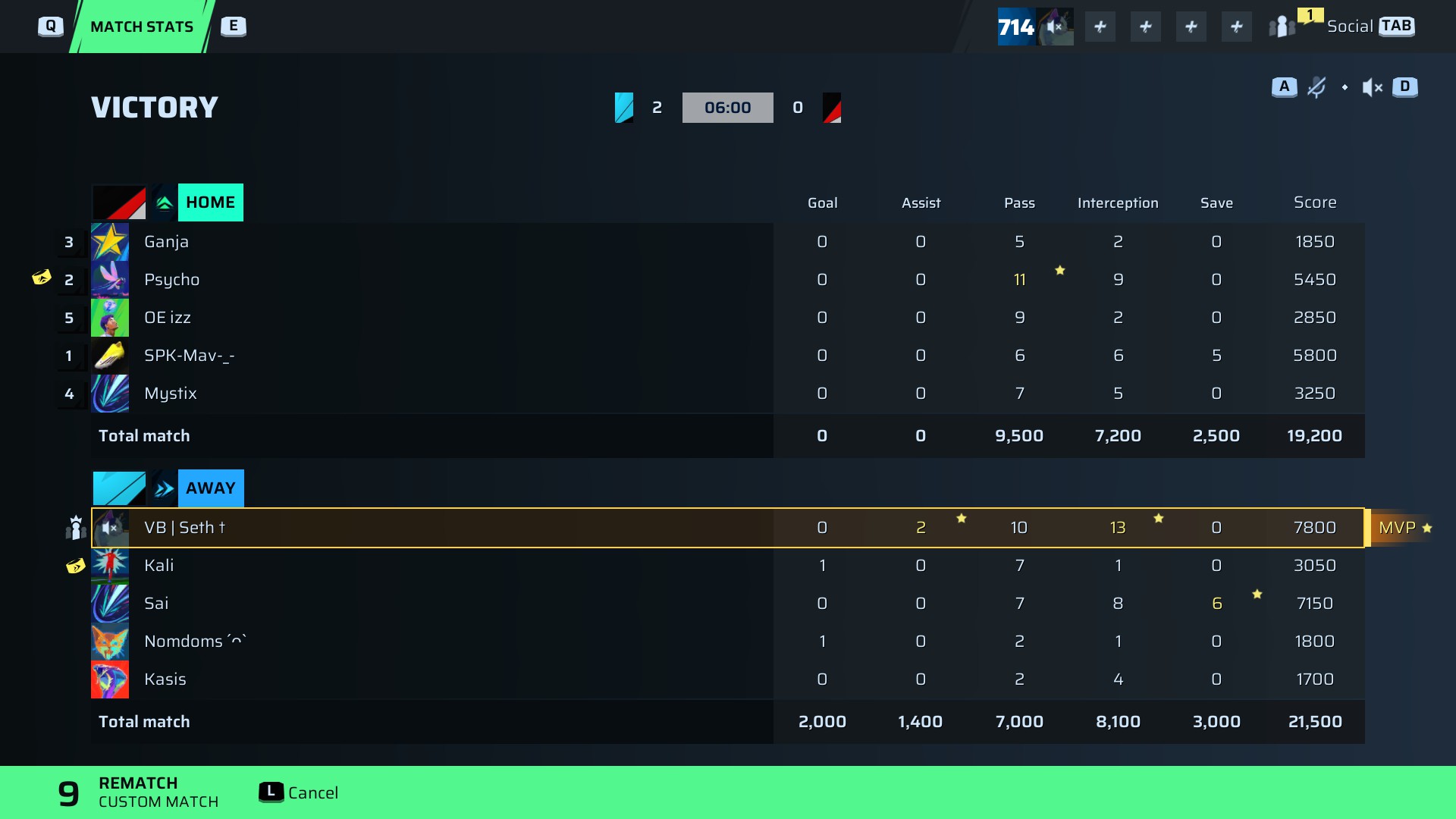 VB | Seth †🐐#11 Defense⭐ MVP92 OVR | 0 | 2 | 10 | 13 | 0 | 7,800 | — |