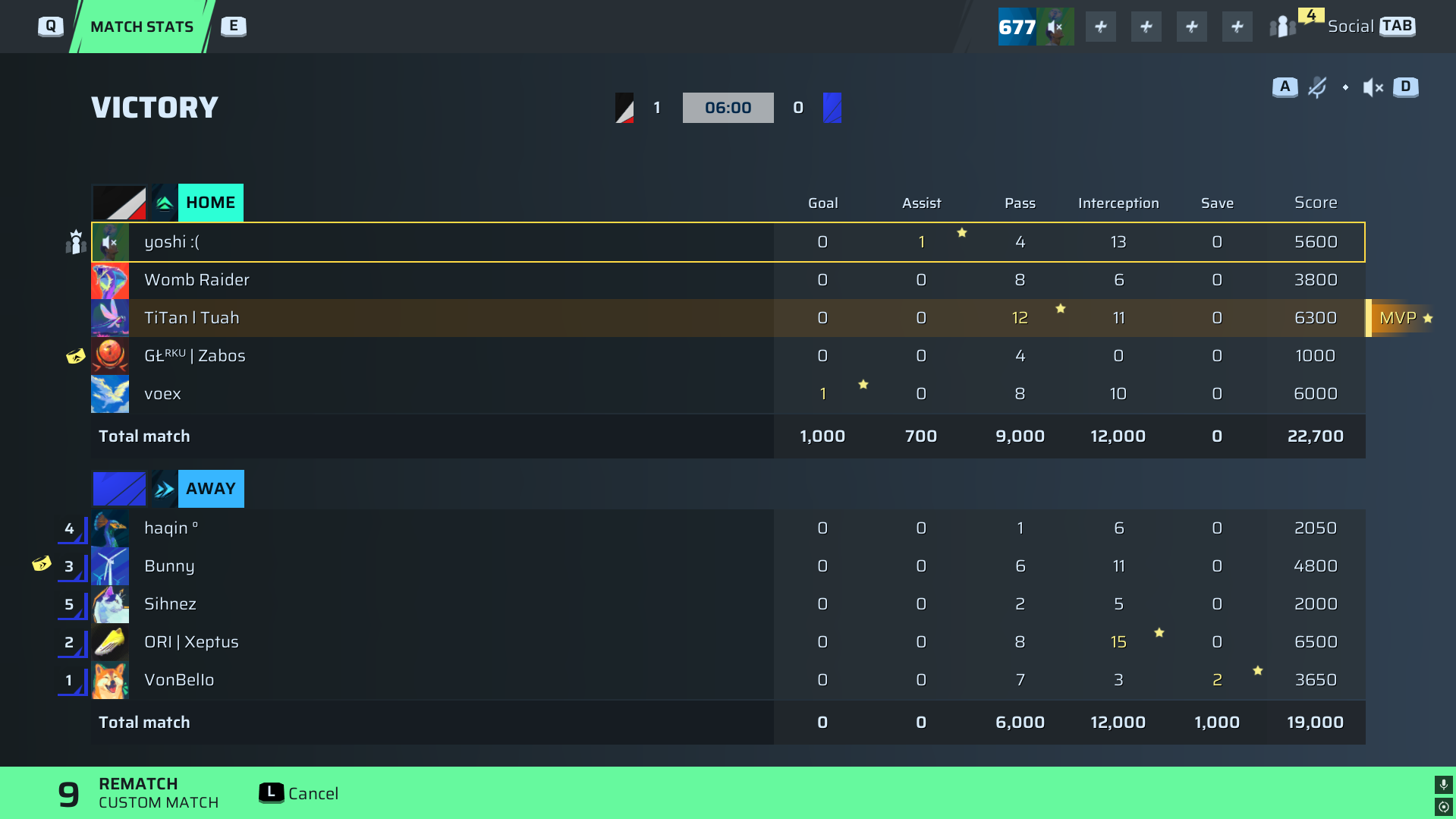 haqin ° Striker78 OVR | 0 | 0 | 1 | 6 | 0 | 2,050 | — |
