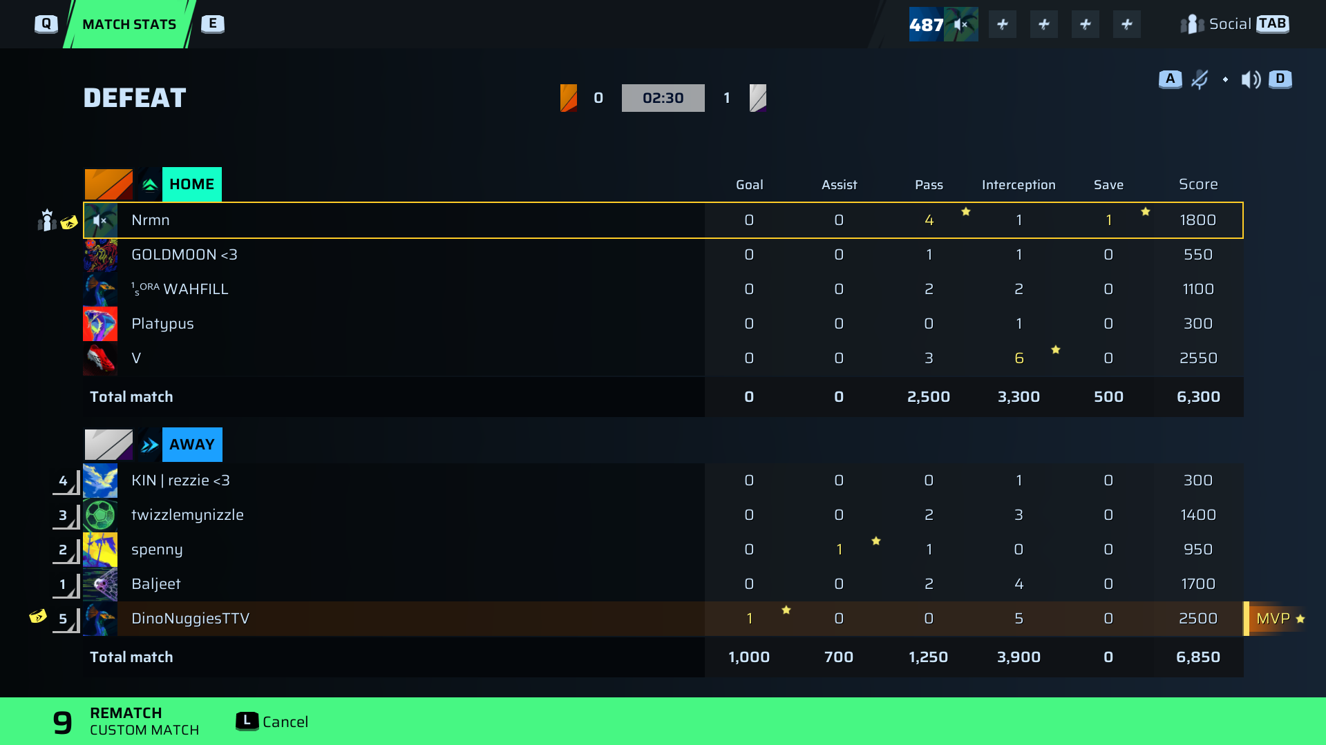 KIN | rezzie <3 Striker72 OVR | 0 | 0 | 0 | 1 | 0 | 300 | — |