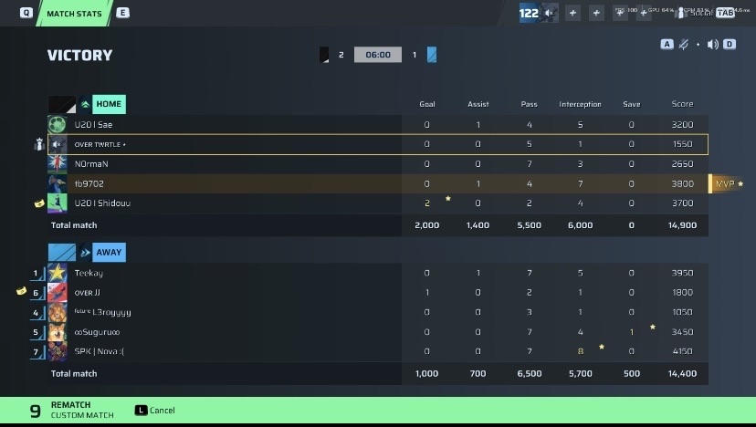 OVER Twrtle ⋆ ⋆ ⋆ ⋆ ⋆🐐#4 Goalkeeper91 OVR | 0 | 0 | 5 | 1 | 0 | 1,550 | ✗ No |