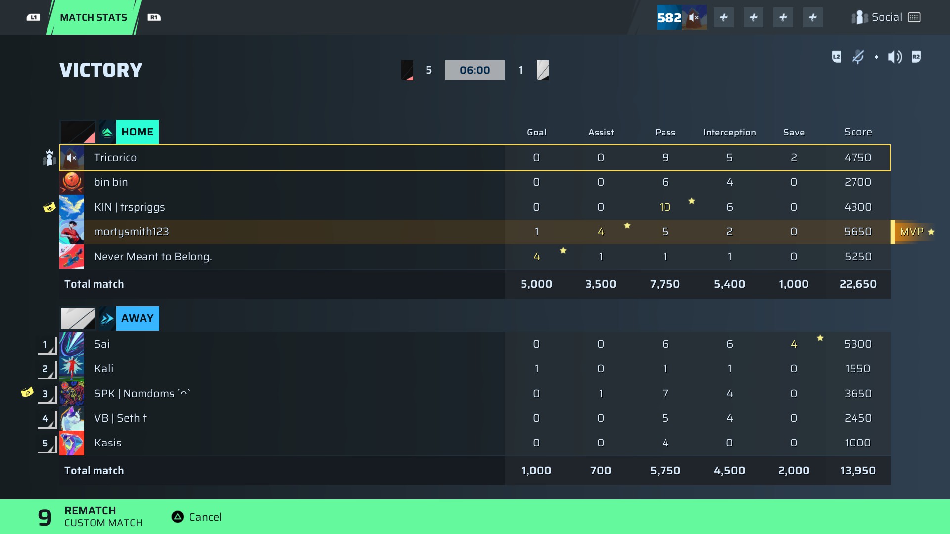 Mortysmith123🐐#46 CDM⭐ MVP95 OVR | 1 | 4 | 5 | 2 | 0 | 5,650 | — |