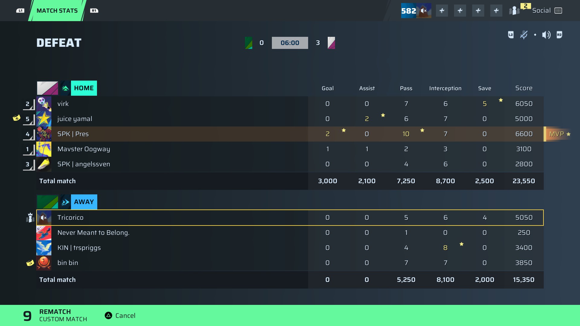SPK | Pres🐐#9 CDM⭐ MVP93 OVR | 2 | 0 | 10 | 7 | 0 | 6,600 | — |