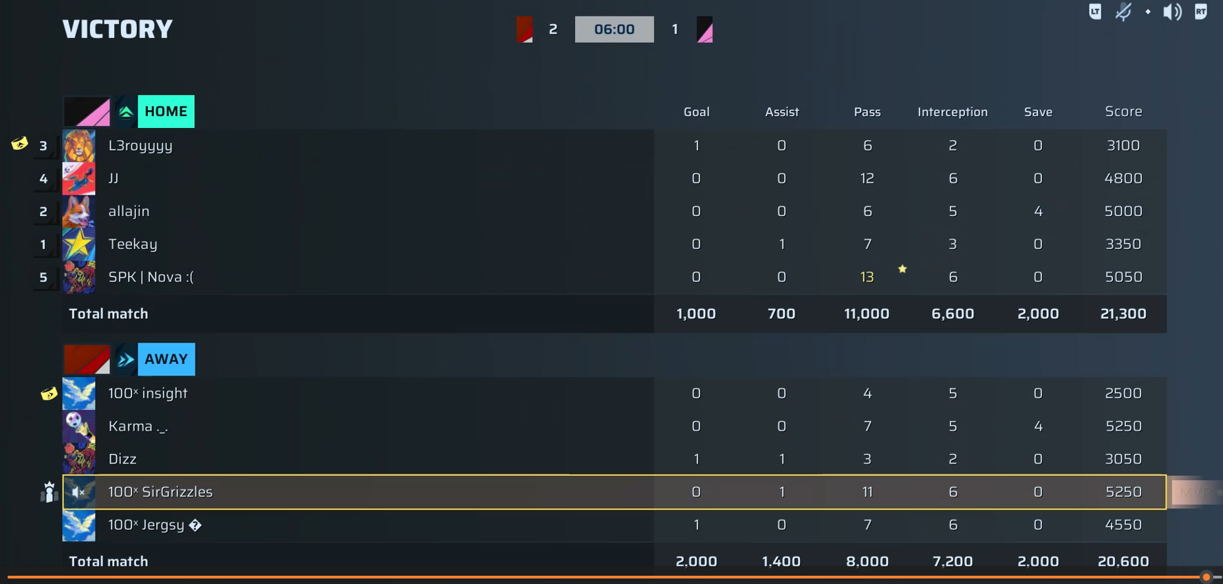 Dizz🐐#20 Goalkeeper64 OVR | 1 | 1 | 3 | 2 | 0 | 3,050 | ✗ No |