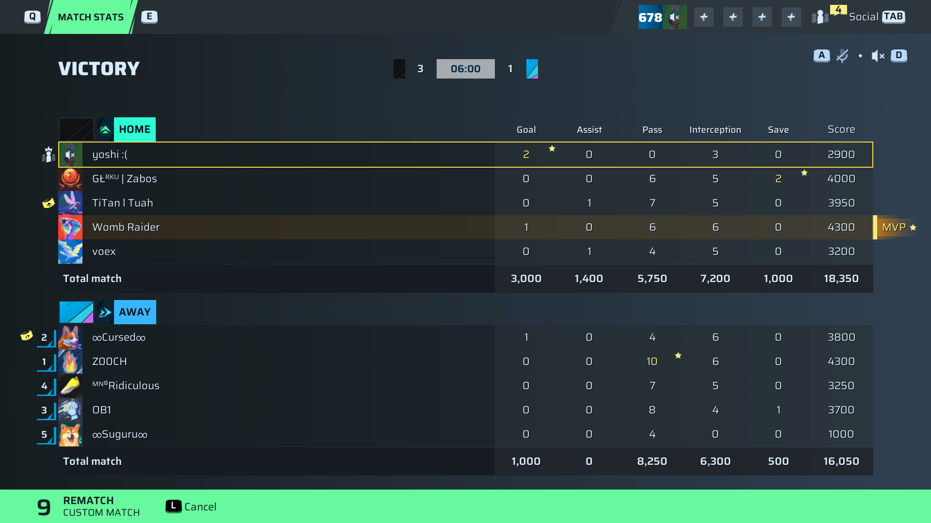 yoshi :(🐐#58 Striker92 OVR | 2 | 0 | 0 | 3 | 0 | 2,900 | — |