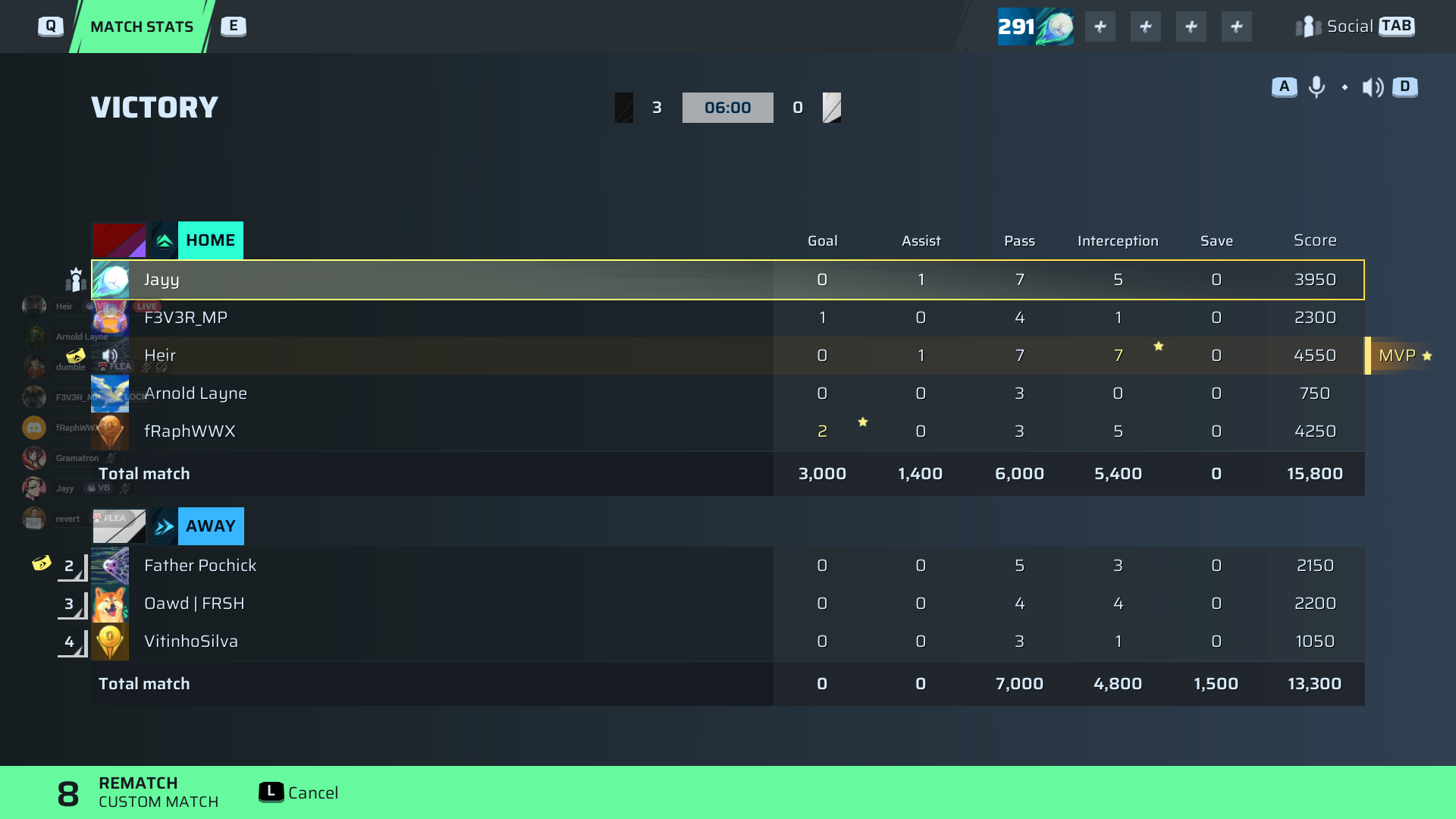 fRaphWWX🐐#172 Striker94 OVR | 2 | 0 | 3 | 5 | 0 | 4,250 | — |