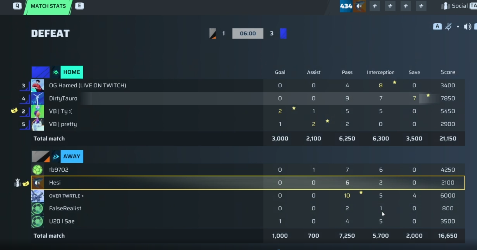 DirtyTauro🐐#6 Goalkeeper⭐ MVP83 OVR | 0 | 0 | 9 | 7 | 7 | 7,850 | ✗ No |