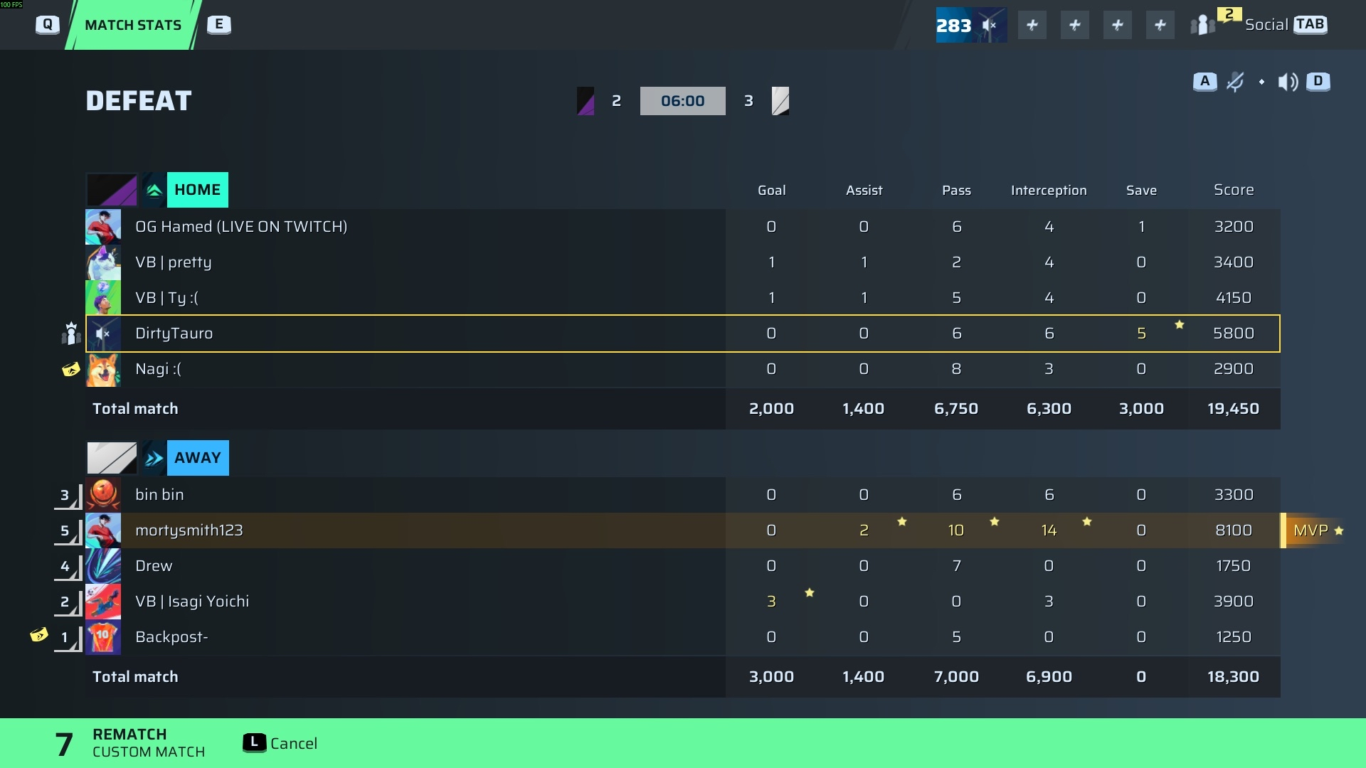 VB | Isagi Yoichi🐐#60 Striker91 OVR | 3 | 0 | 0 | 3 | 0 | 3,900 | — |