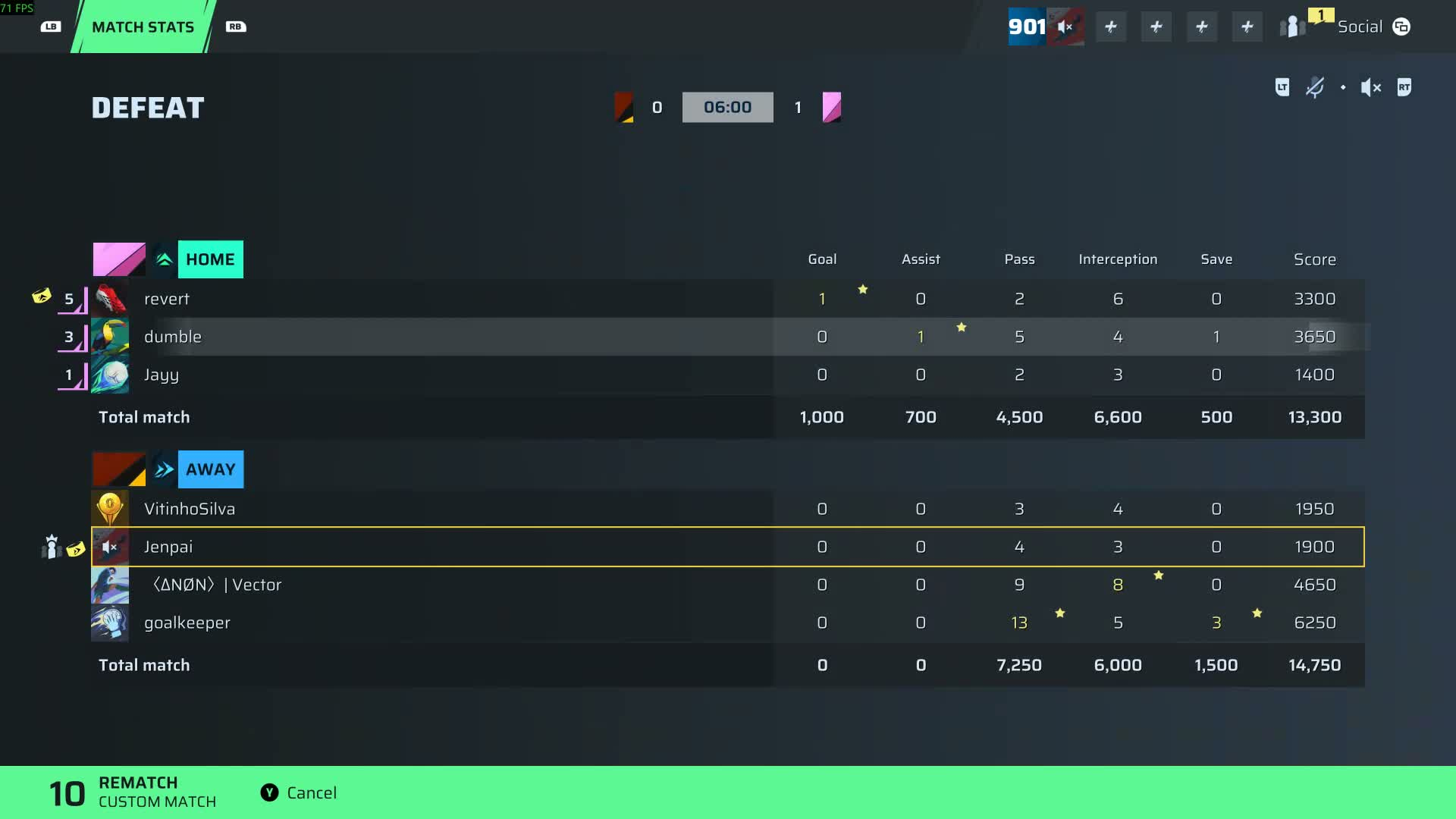 Jenpai🐐#102 Striker76 OVR | 0 | 0 | 4 | 3 | 0 | 1,900 | — |