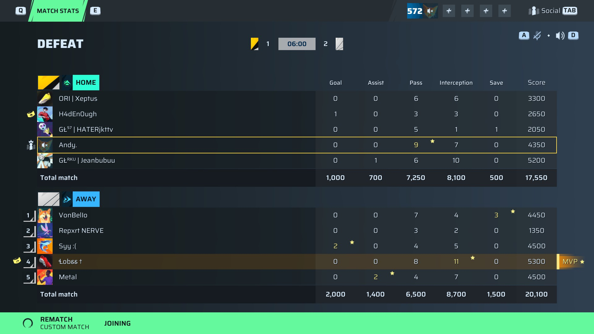 GŁᴿᴷᵁ | Jeanbubuu🐐#221 Striker82 OVR | 0 | 1 | 6 | 10 | 0 | 5,200 | — |