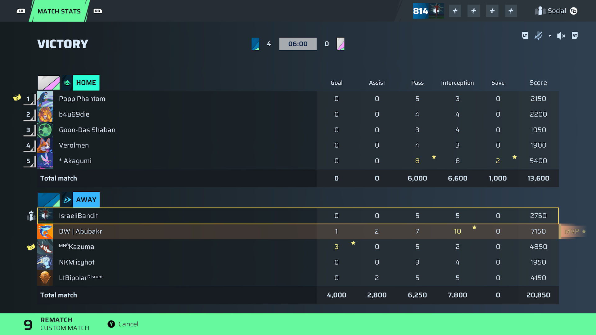 DW | Abubakr CAM⭐ MVP84 OVR | 1 | 2 | 7 | 10 | 0 | 7,150 | — |
