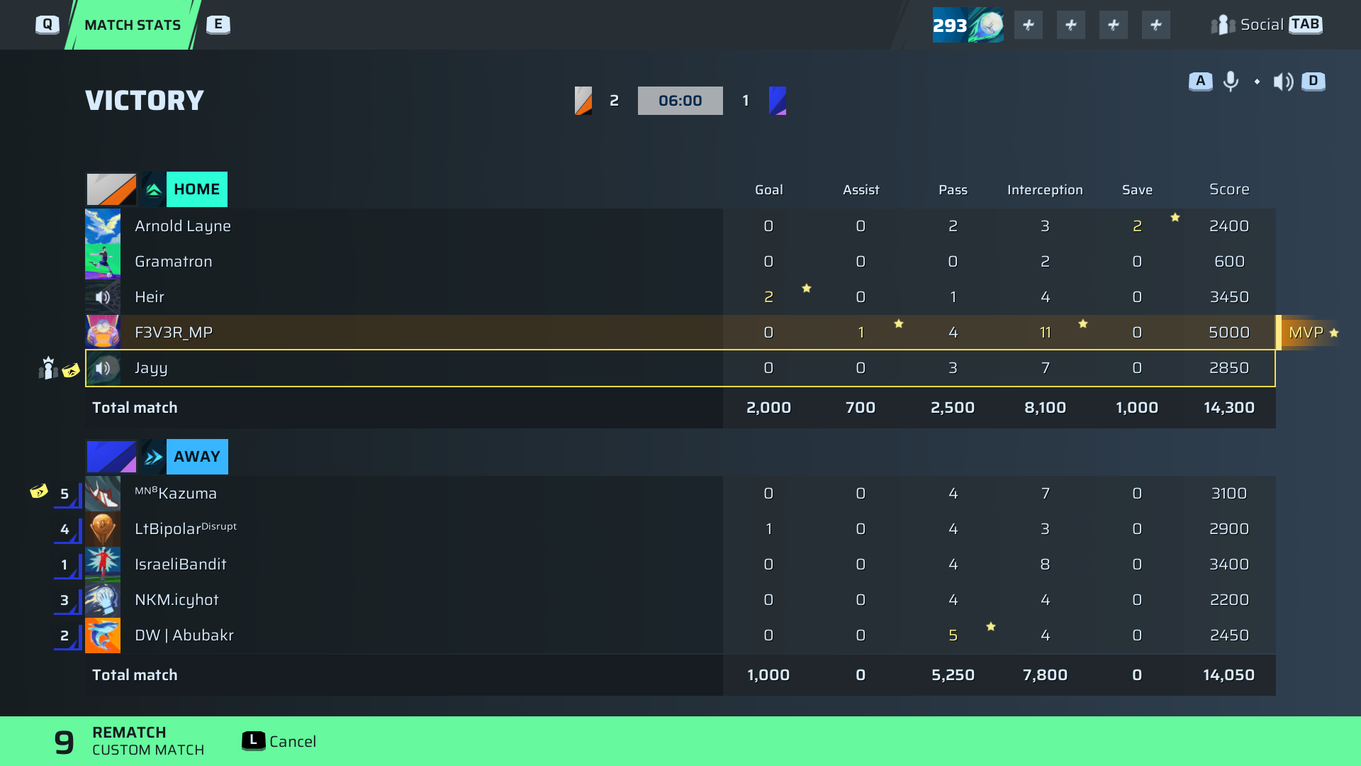F3V3R_MP🐐#70 Defense⭐ MVP88 OVR | 0 | 1 | 4 | 11 | 0 | 5,000 | — |