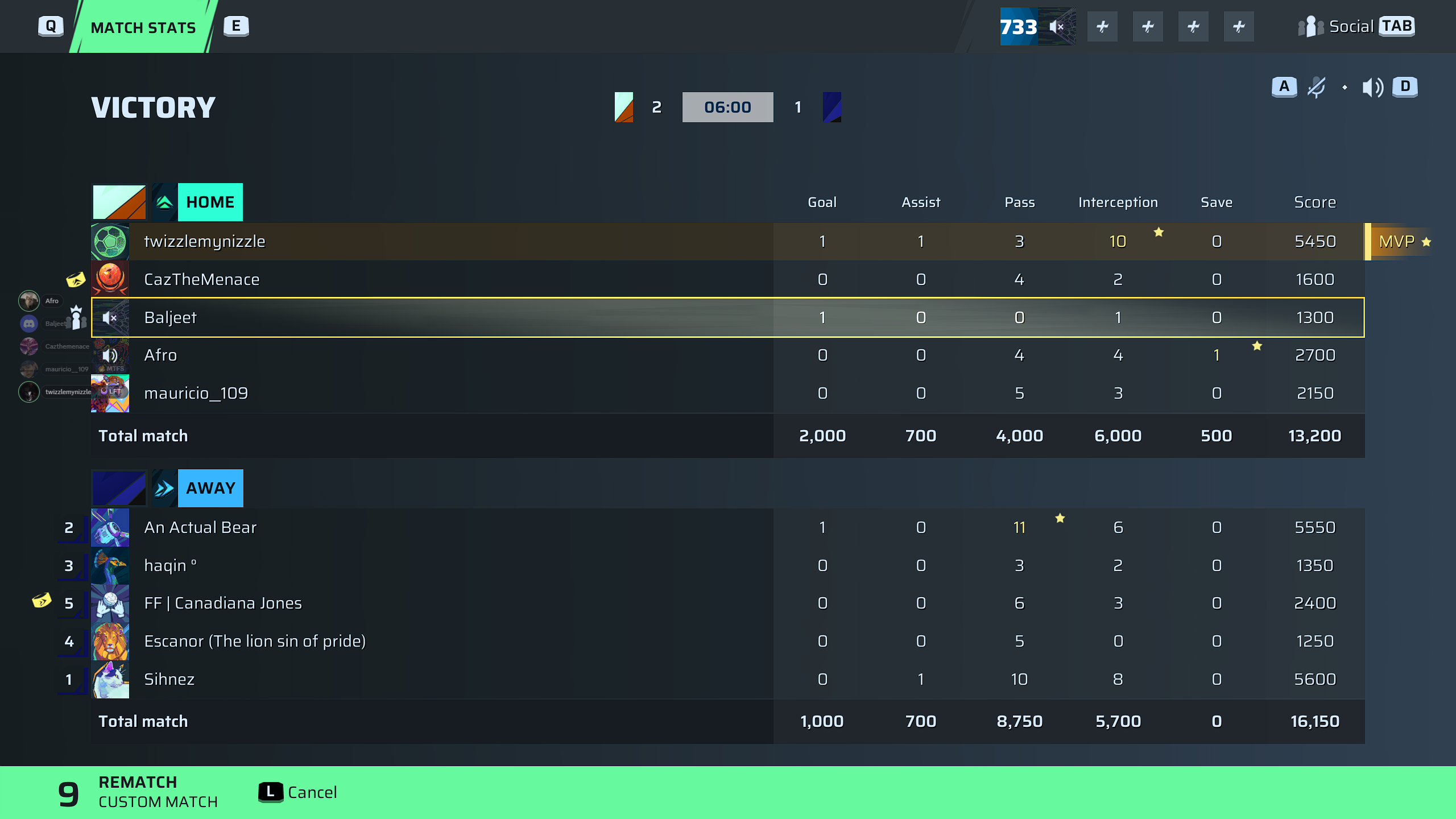 twizzlemynizzle🐐#199 Defense⭐ MVP91 OVR | 1 | 1 | 3 | 10 | 0 | 5,450 | — |