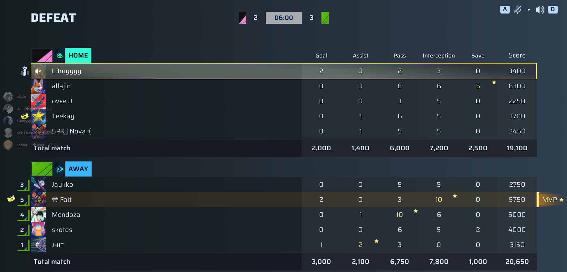 Jhit :(🐐#10 Striker84 OVR | 1 | 2 | 3 | 0 | 0 | 3,150 | — |
