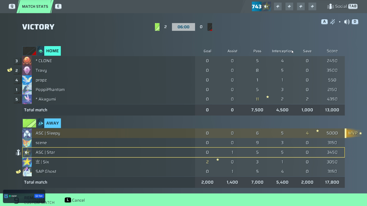 * Clone Striker80 OVR | 0 | 0 | 5 | 4 | 0 | 2,450 | — |