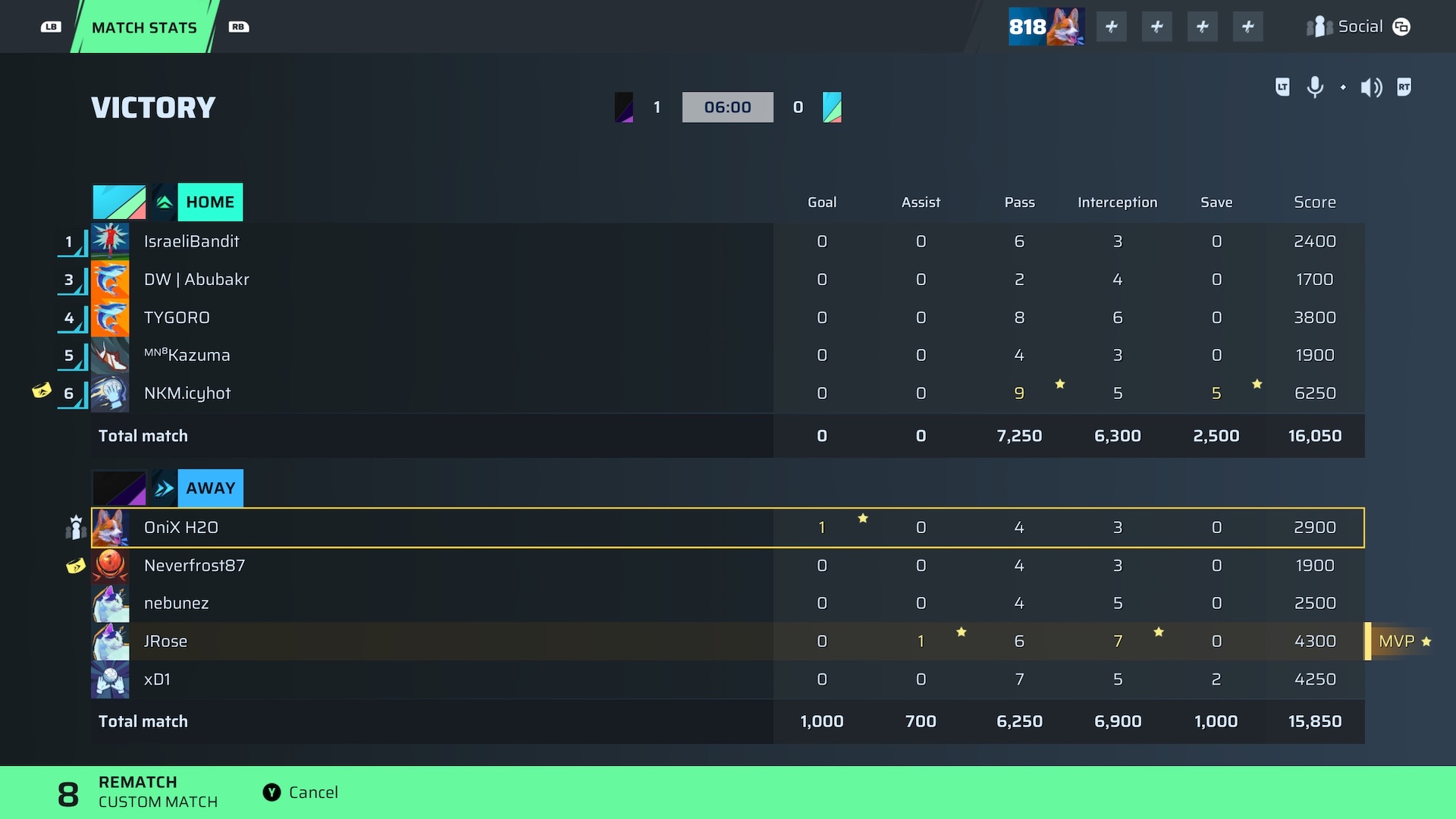 OniX H2O🐐#34 Striker83 OVR | 1 | 0 | 4 | 3 | 0 | 2,900 | — |