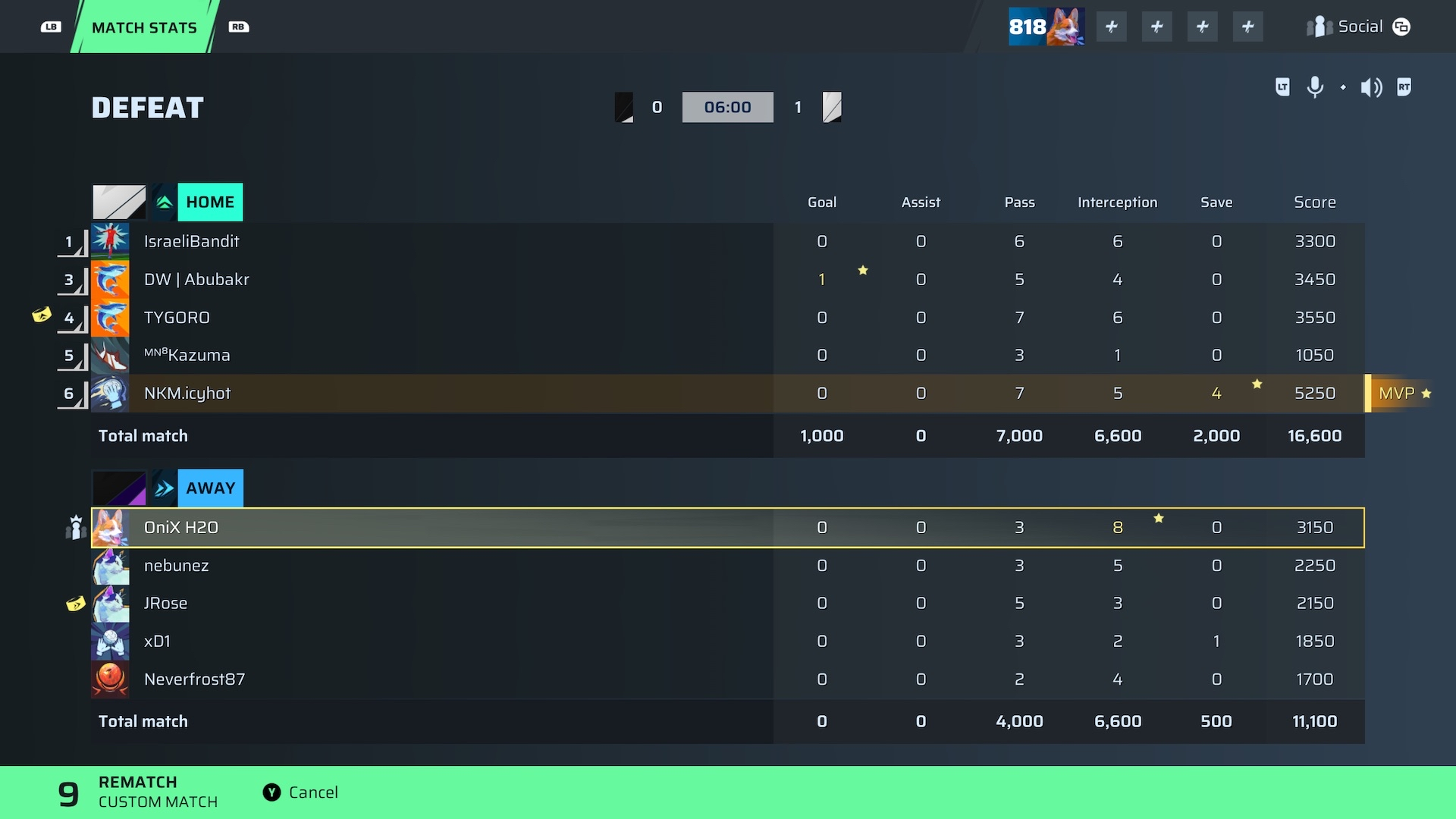 OniX H2O🐐#34 Striker83 OVR | 0 | 0 | 3 | 8 | 0 | 3,150 | — |