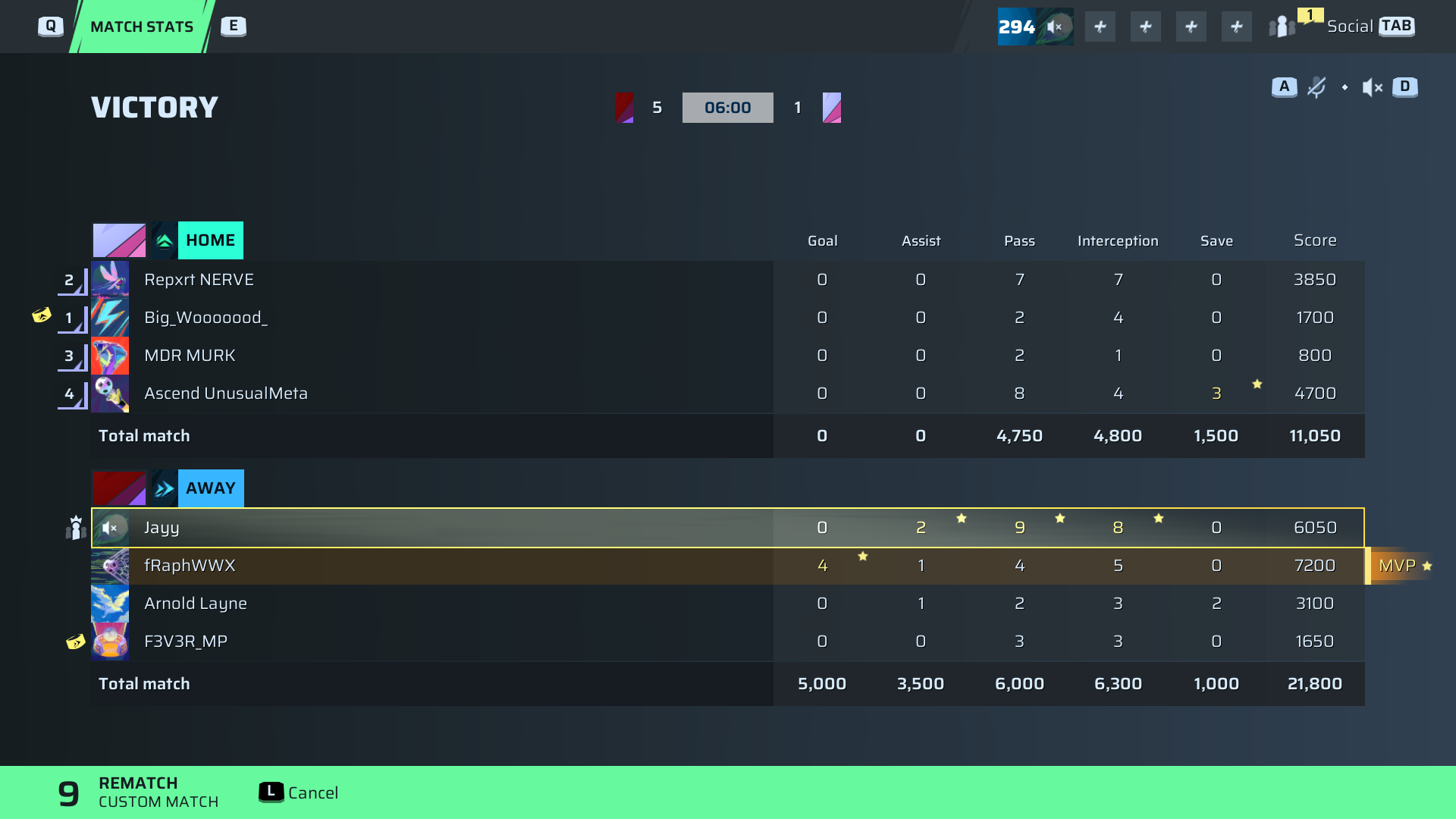 fRaphWWX🐐#172 Striker⭐ MVP94 OVR | 4 | 1 | 4 | 5 | 0 | 7,200 | — |