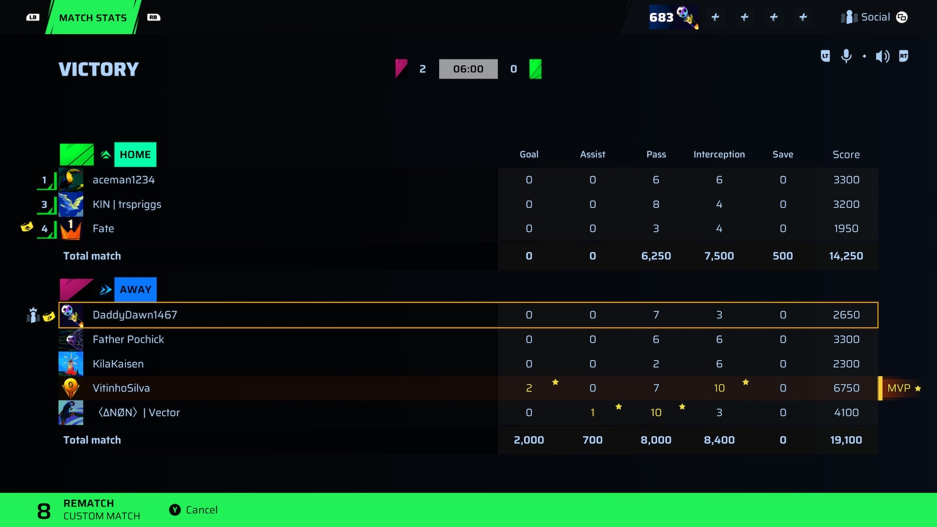 VitinhoSilva🐐#86 Striker⭐ MVP89 OVR | 2 | 0 | 7 | 10 | 0 | 6,750 | — |
