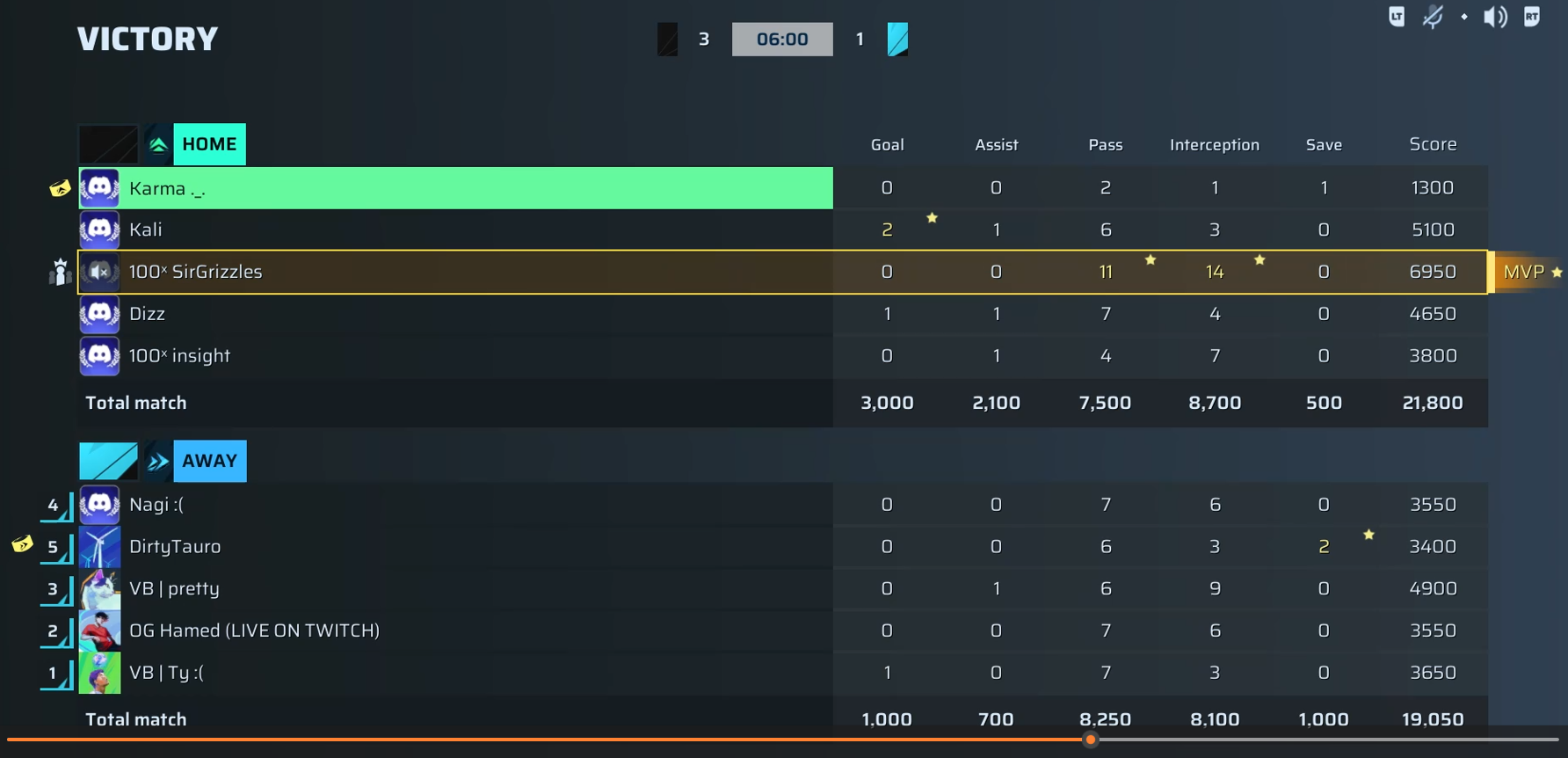 Dizz🐐#20 Goalkeeper64 OVR | 1 | 1 | 7 | 4 | 0 | 4,650 | ✗ No |