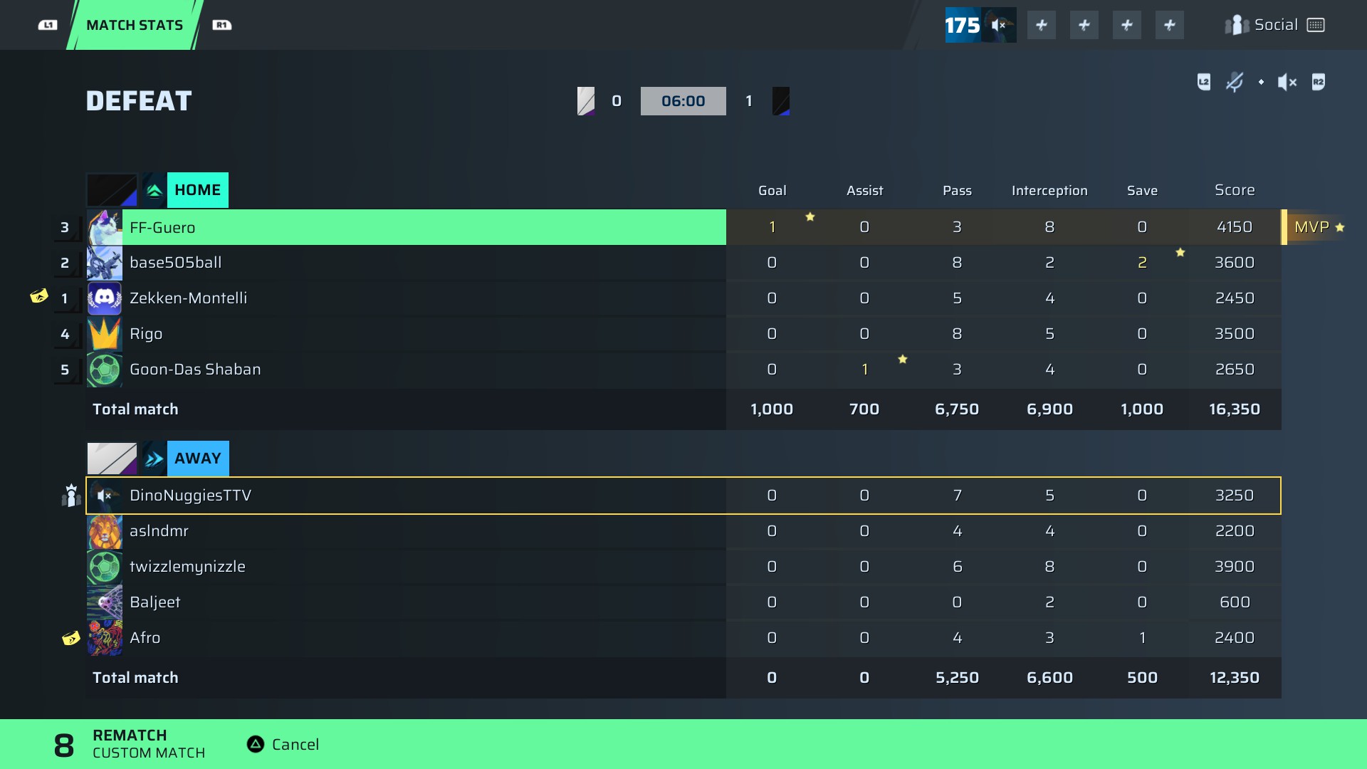 FF-Guero🐐#162 Defense⭐ MVP89 OVR | 1 | 0 | 3 | 8 | 0 | 4,150 | — |