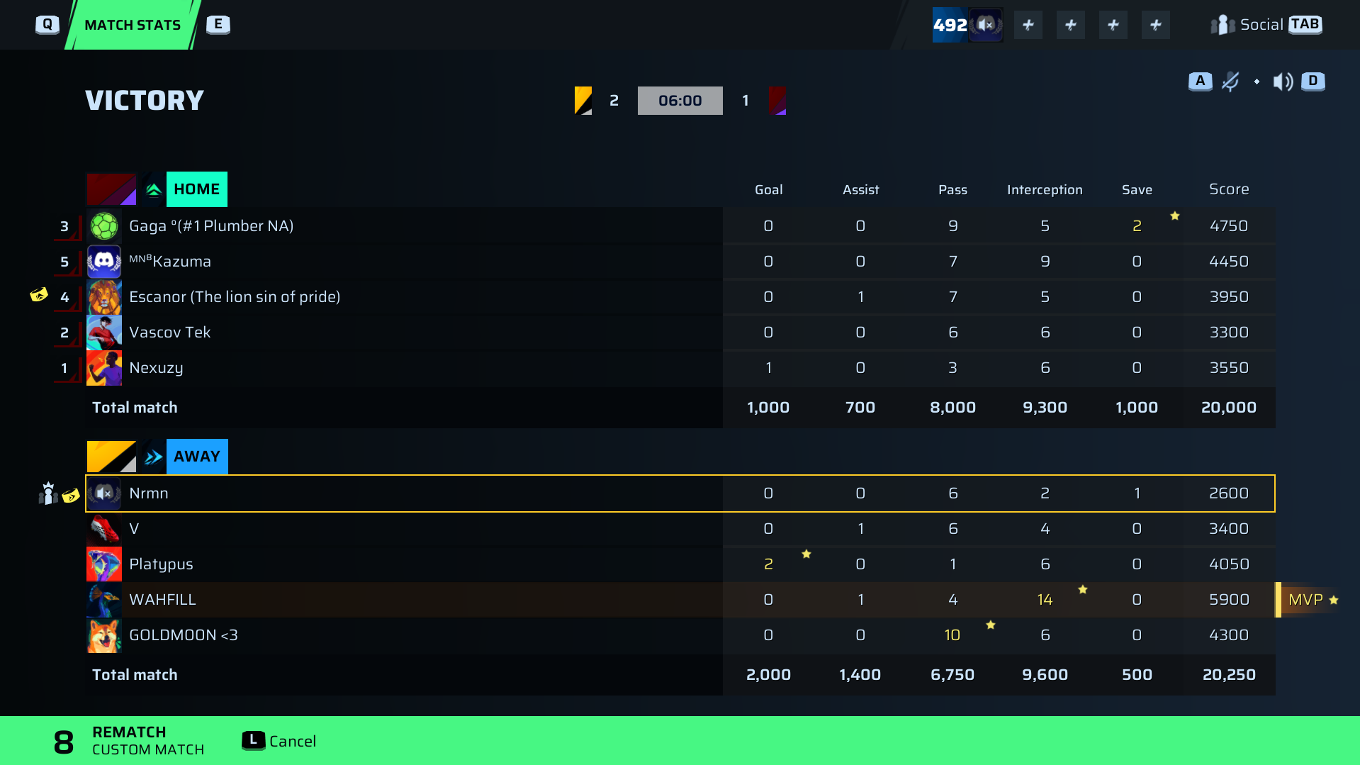 Nrmn🐐#123 Goalkeeper80 OVR | 0 | 0 | 6 | 2 | 1 | 2,600 | ✗ No |