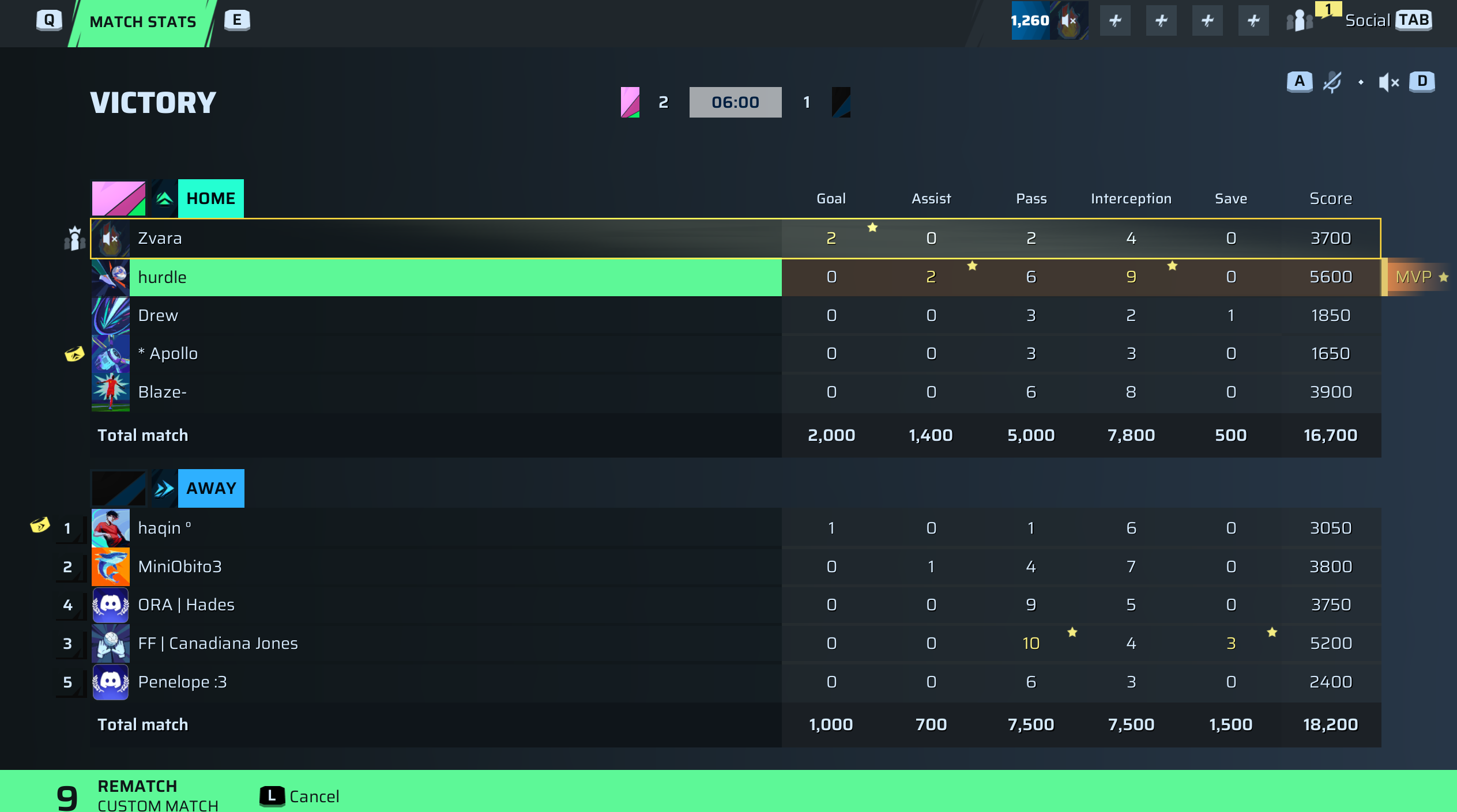 haqin ° Striker78 OVR | 1 | 0 | 1 | 6 | 0 | 3,050 | — |