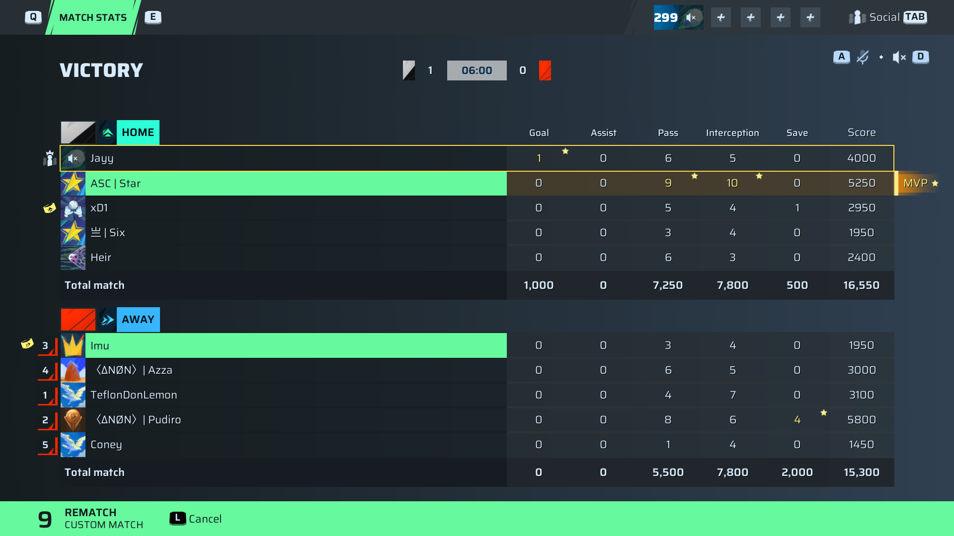 ASC | Star🐐#84 CDM⭐ MVP90 OVR | 0 | 0 | 9 | 10 | 0 | 5,250 | — |