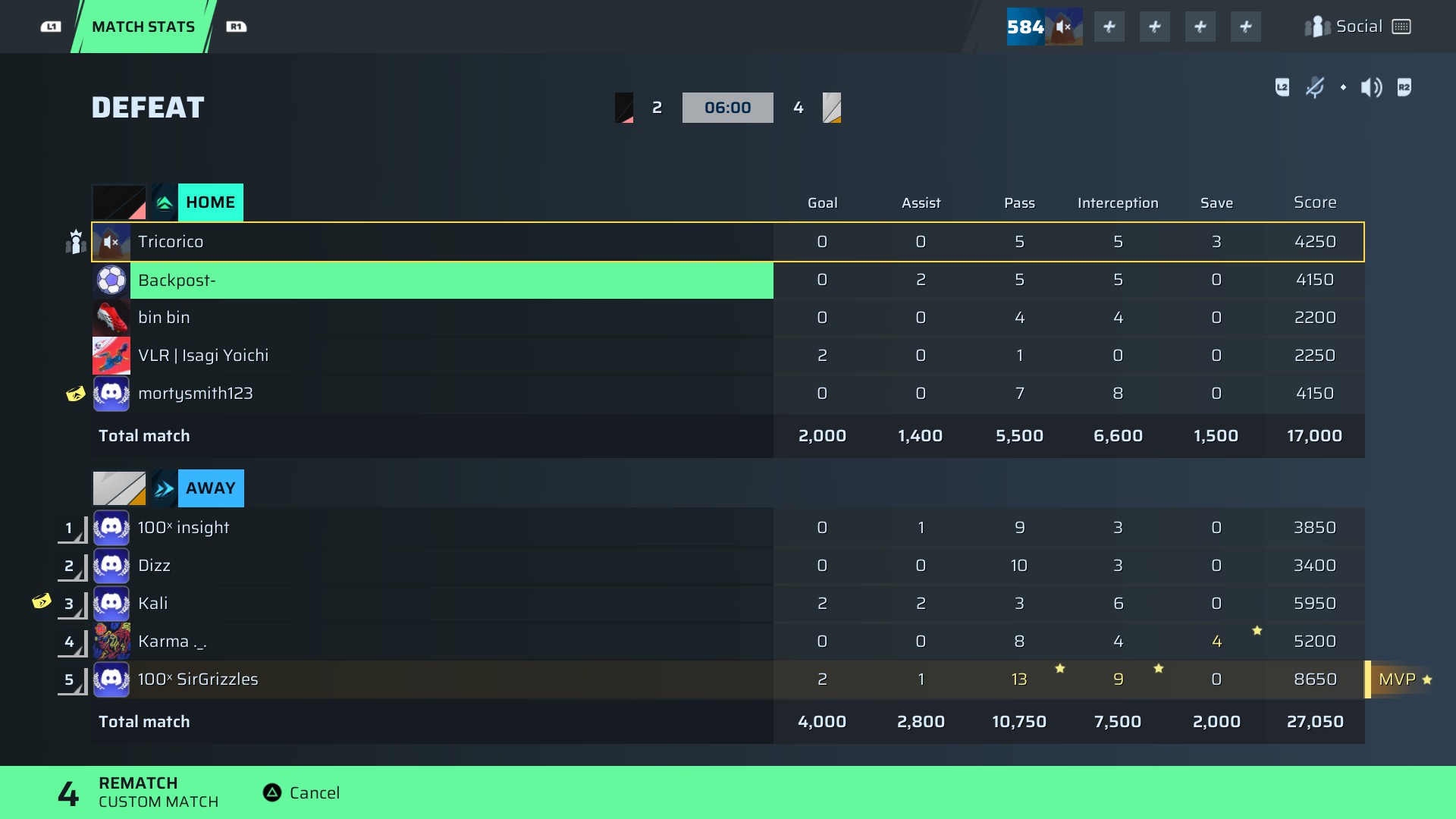Tricorico🐐#105 Goalkeeper93 OVR | 0 | 0 | 5 | 5 | 3 | 4,250 | ✗ No |