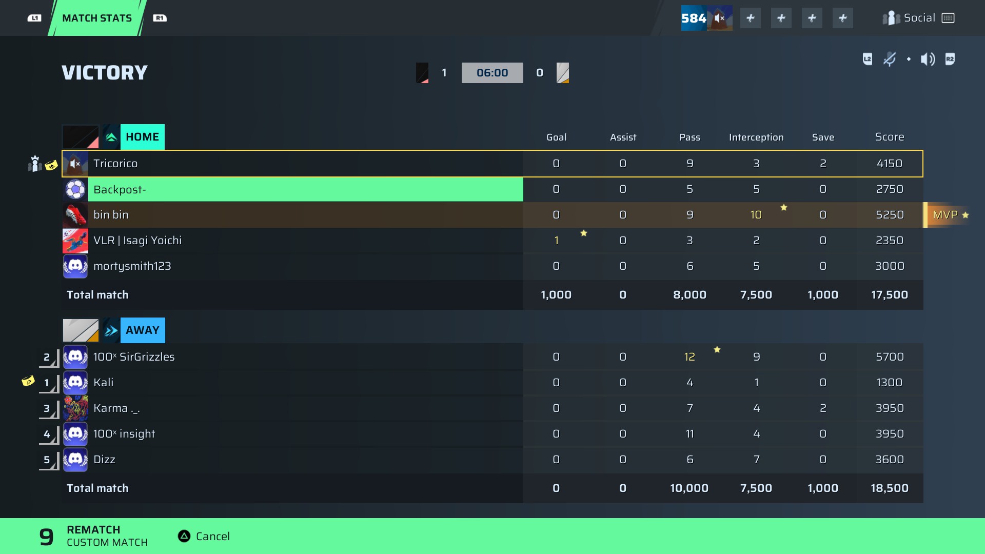 VB | Isagi Yoichi🐐#60 Striker91 OVR | 1 | 0 | 3 | 2 | 0 | 2,350 | — |