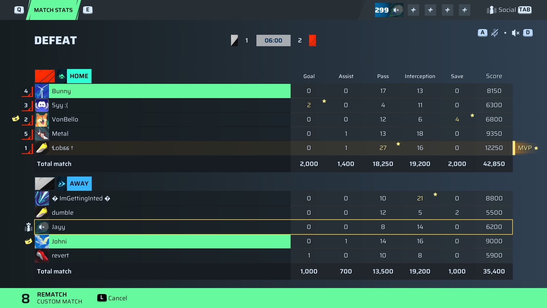 Lobss ✝🐐#107 CDM⭐ MVP83 OVR | 0 | 1 | 27 | 16 | 0 | 12,250 | — |