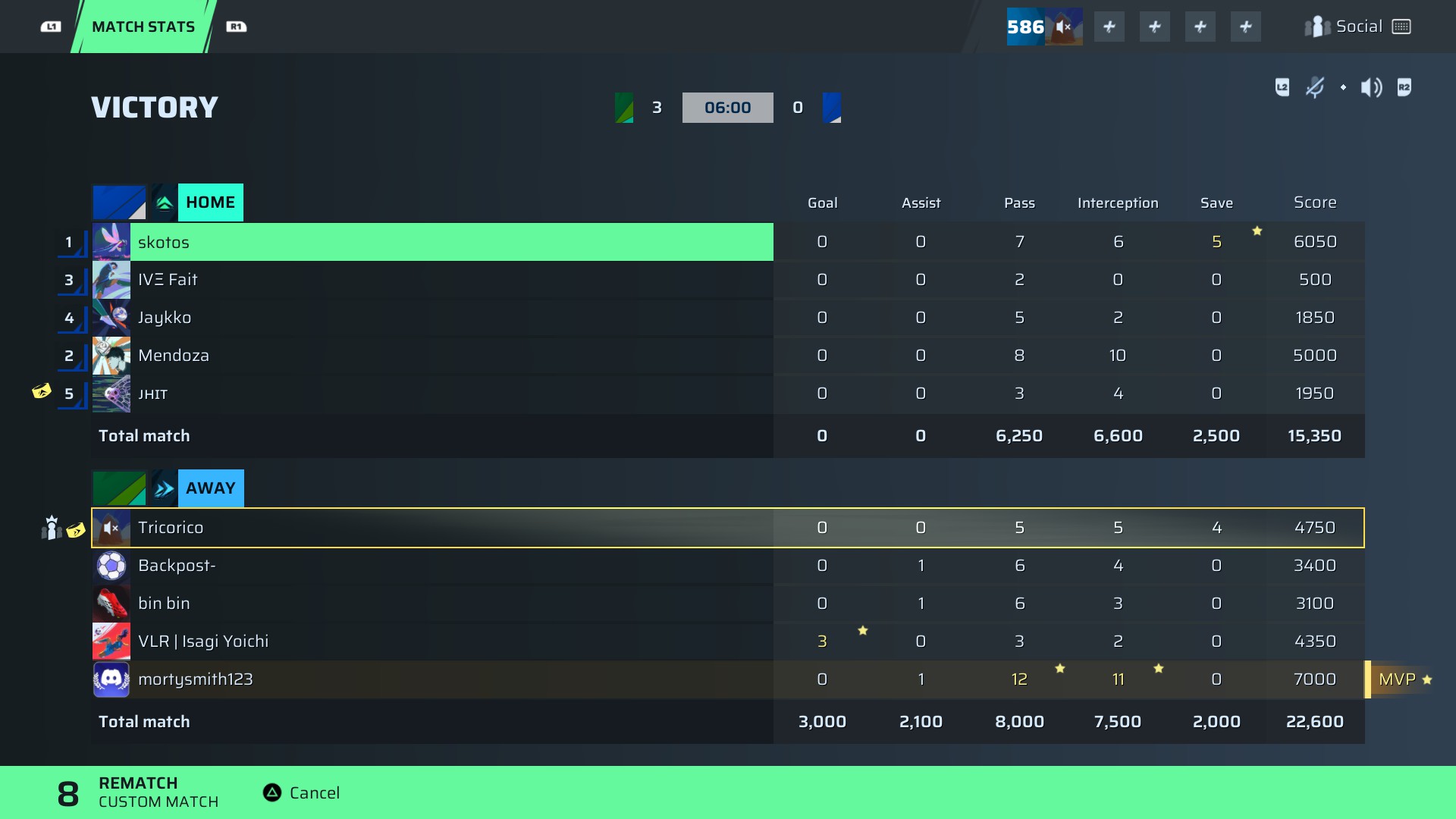 VB | Isagi Yoichi🐐#60 Striker91 OVR | 3 | 0 | 3 | 2 | 0 | 4,350 | — |