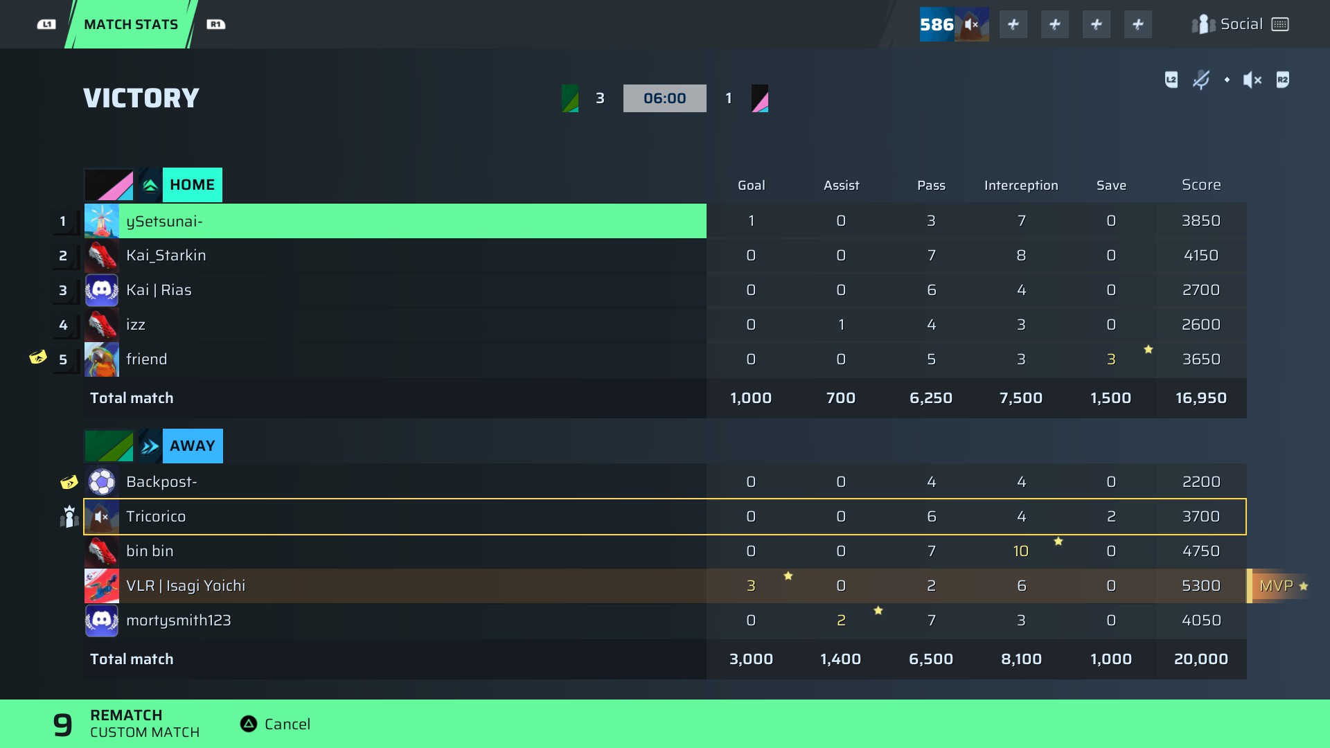 VB | Isagi Yoichi🐐#60 Striker⭐ MVP91 OVR | 3 | 0 | 2 | 6 | 0 | 5,300 | — |